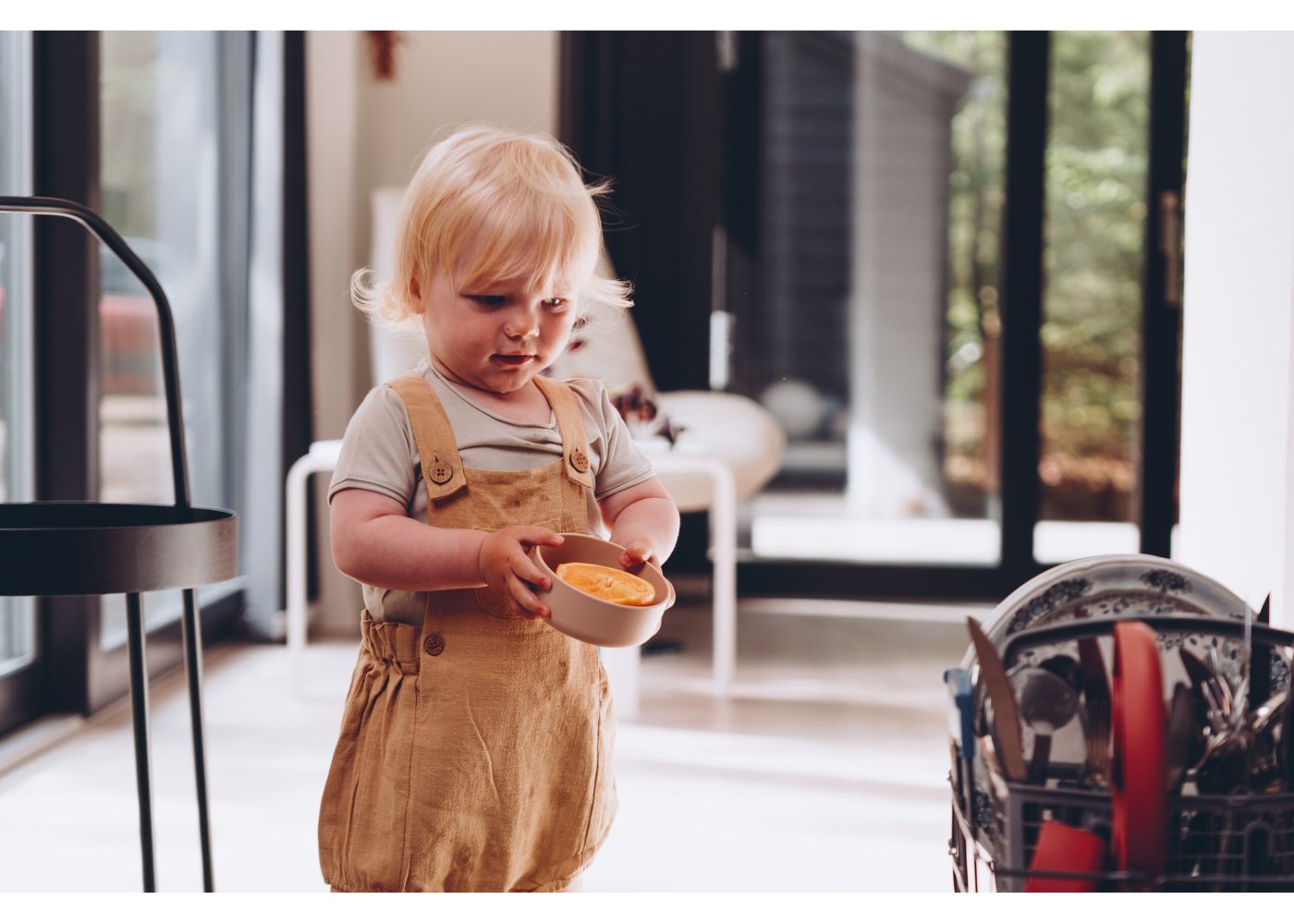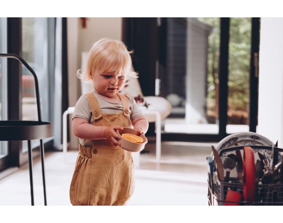Spisestellet har en lang levetid, da det kan benyttes helt fra barnets første måltid, og derfra tilpasses, i takt med at barnets færdigheder og motorik udvikles. Blandt andet ved at fjerne låget fra tudekoppen og introducere kniven.