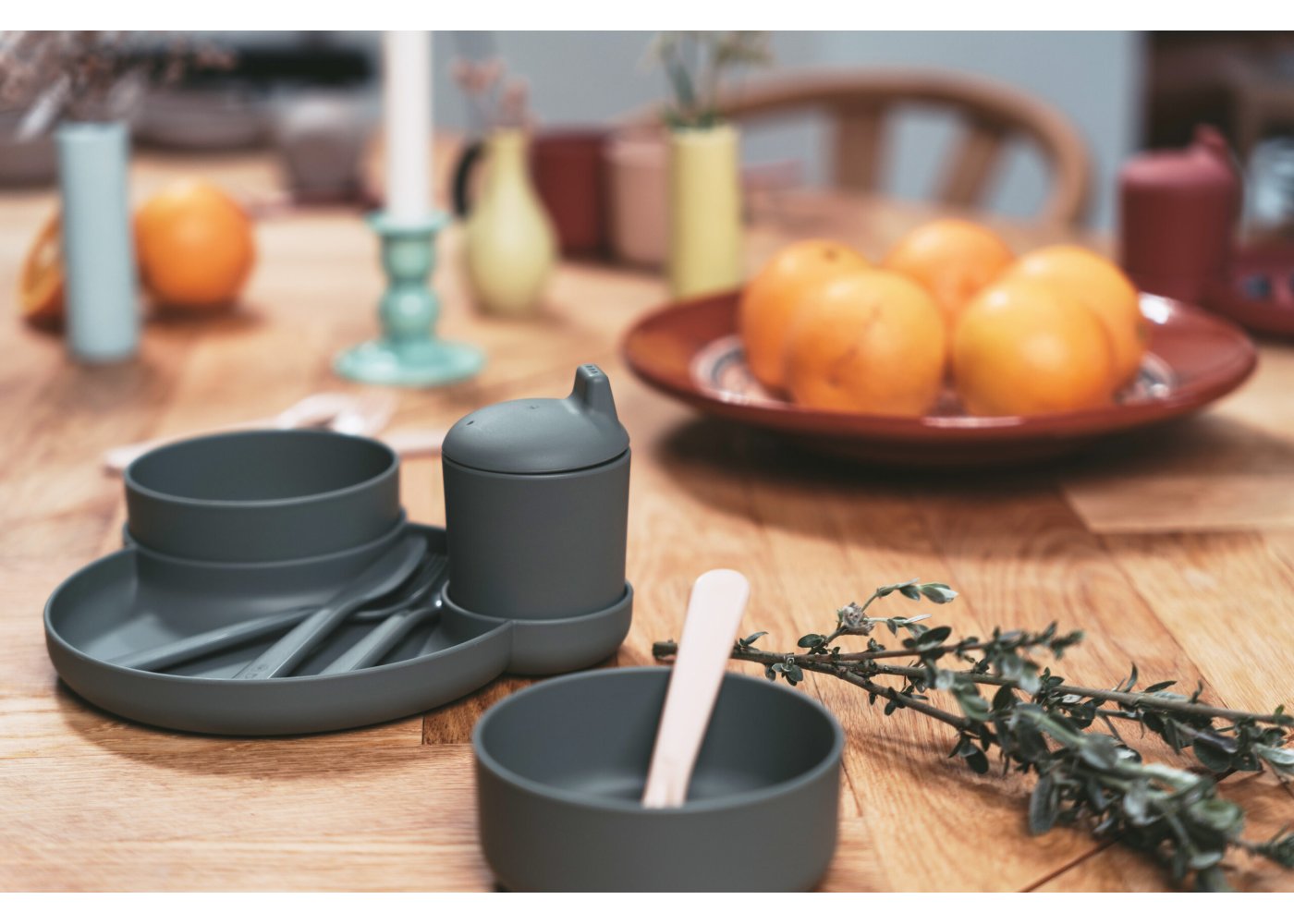 Spisestellet har en lang levetid, da det kan benyttes helt fra barnets første måltid, og derfra tilpasses, i takt med at barnets færdigheder og motorik udvikles. Blandt andet ved at fjerne låget fra tudekoppen og introducere kniven.
