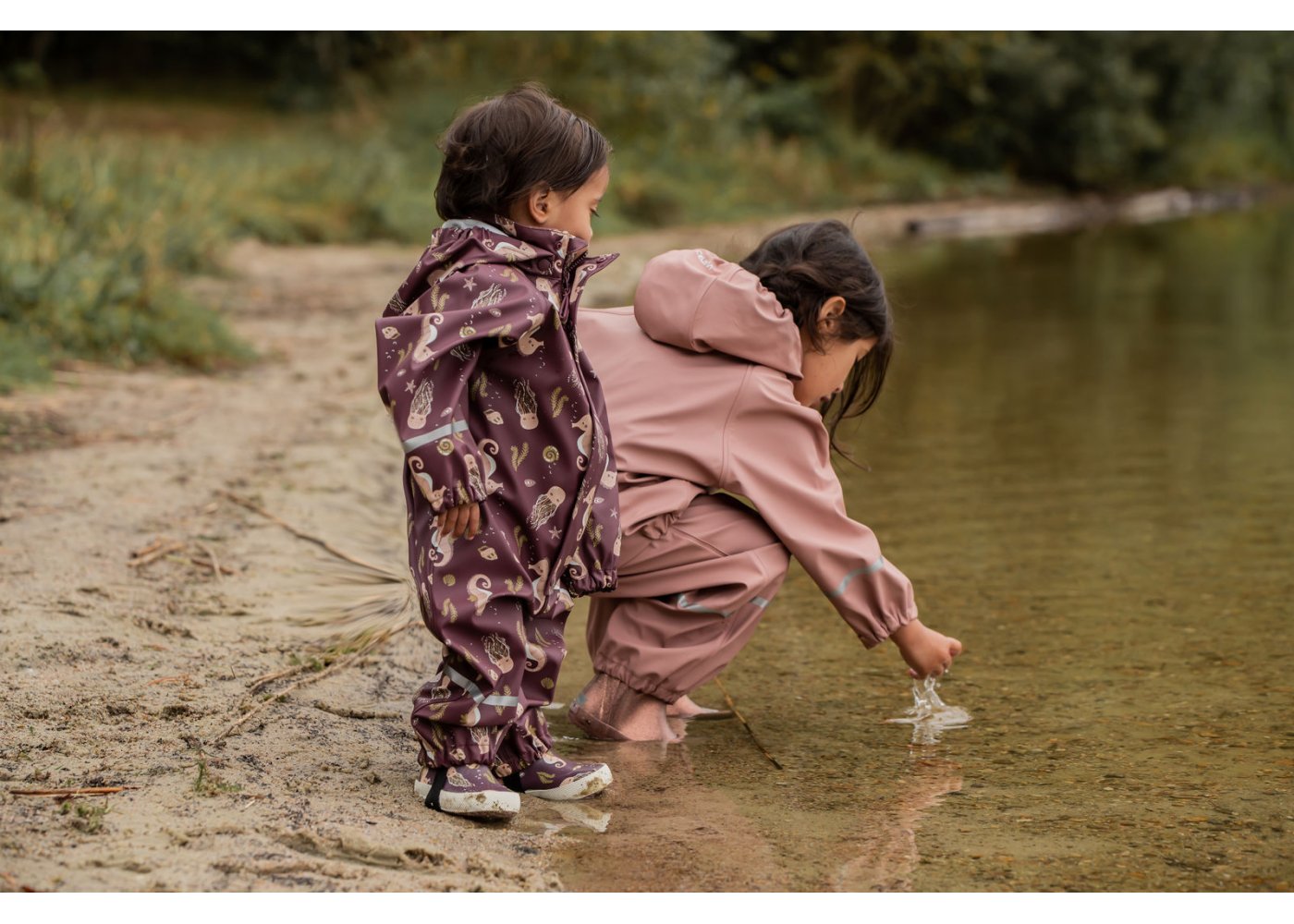 Praktisk og slidstærkt PU-regndragt med print af søheste og blæksprutter.