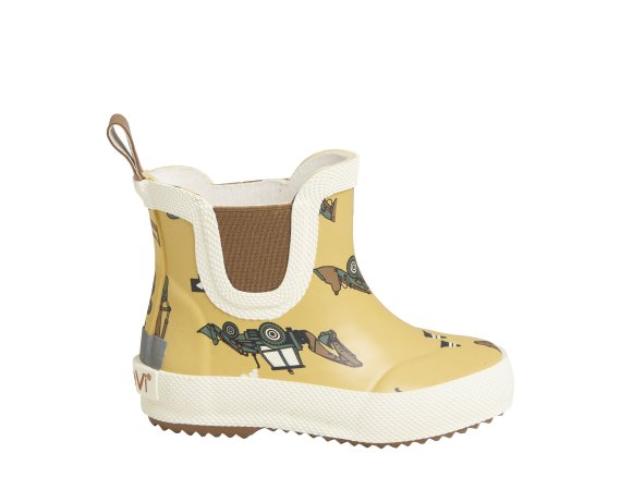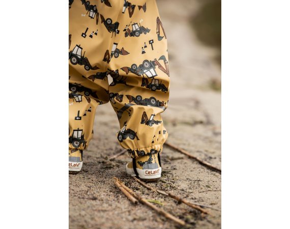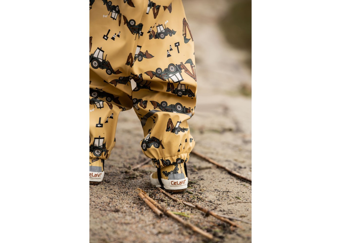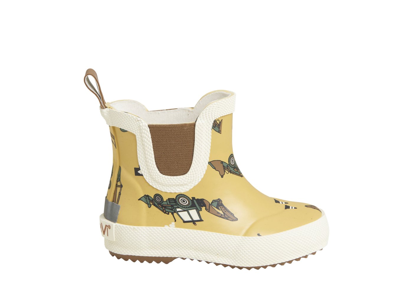 Kvalitets gummistøvler i gul med entreprenørbiler og refleks bag på hælen. Gummistøvlen er i en kort model med en praktisk elastik i siden, der gør det let at tage støvlen på. Støvlen har en let tekstilforing, og udtagelige såler. Ydersålen har et kraftigt skrid mønster, der sikrer et godt fodfæste. CeLaVi ligger vægt på at gummistøvler skal være funktionelle og komfortable, da de ofte bruges i flere timer ad gangen.
