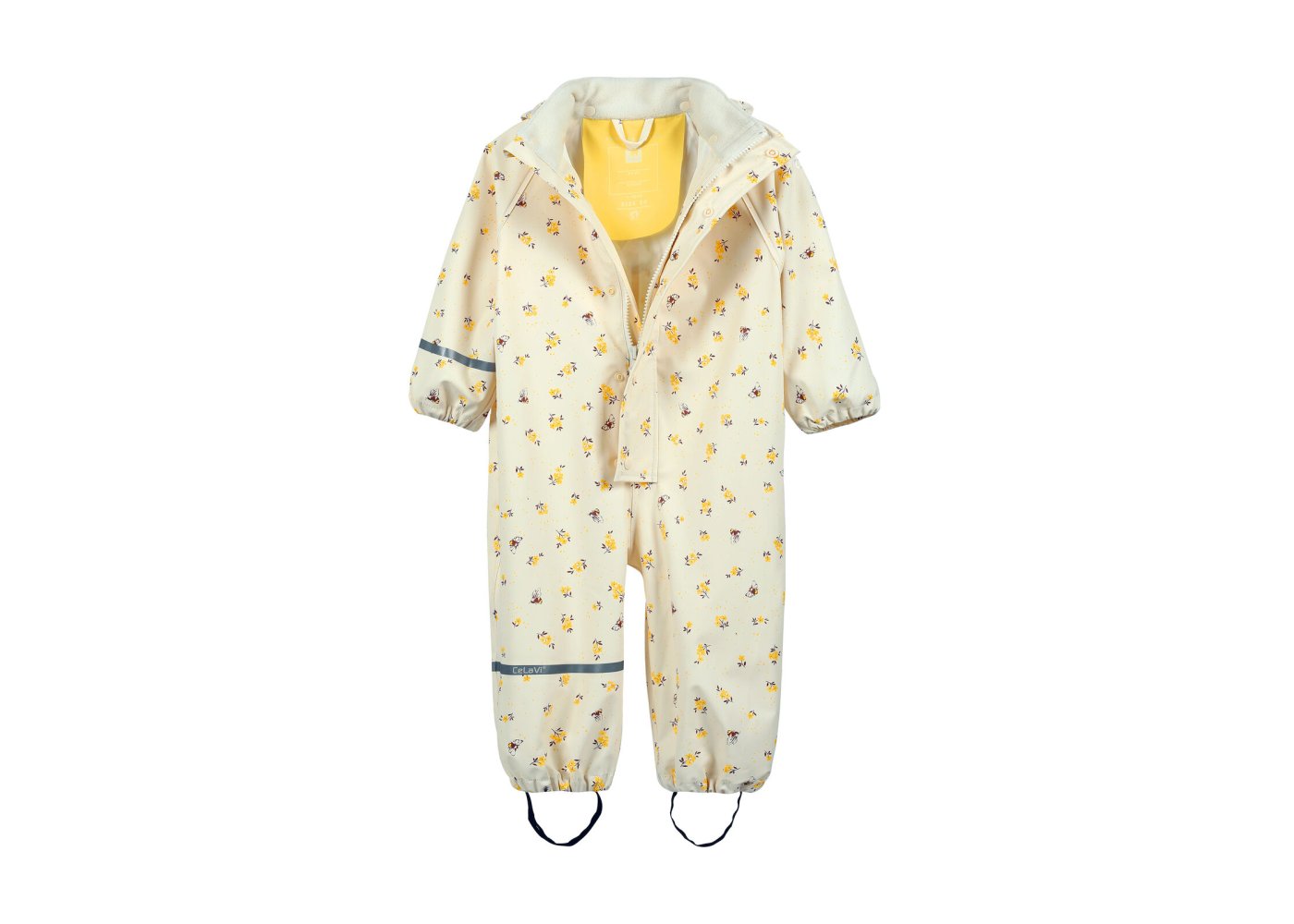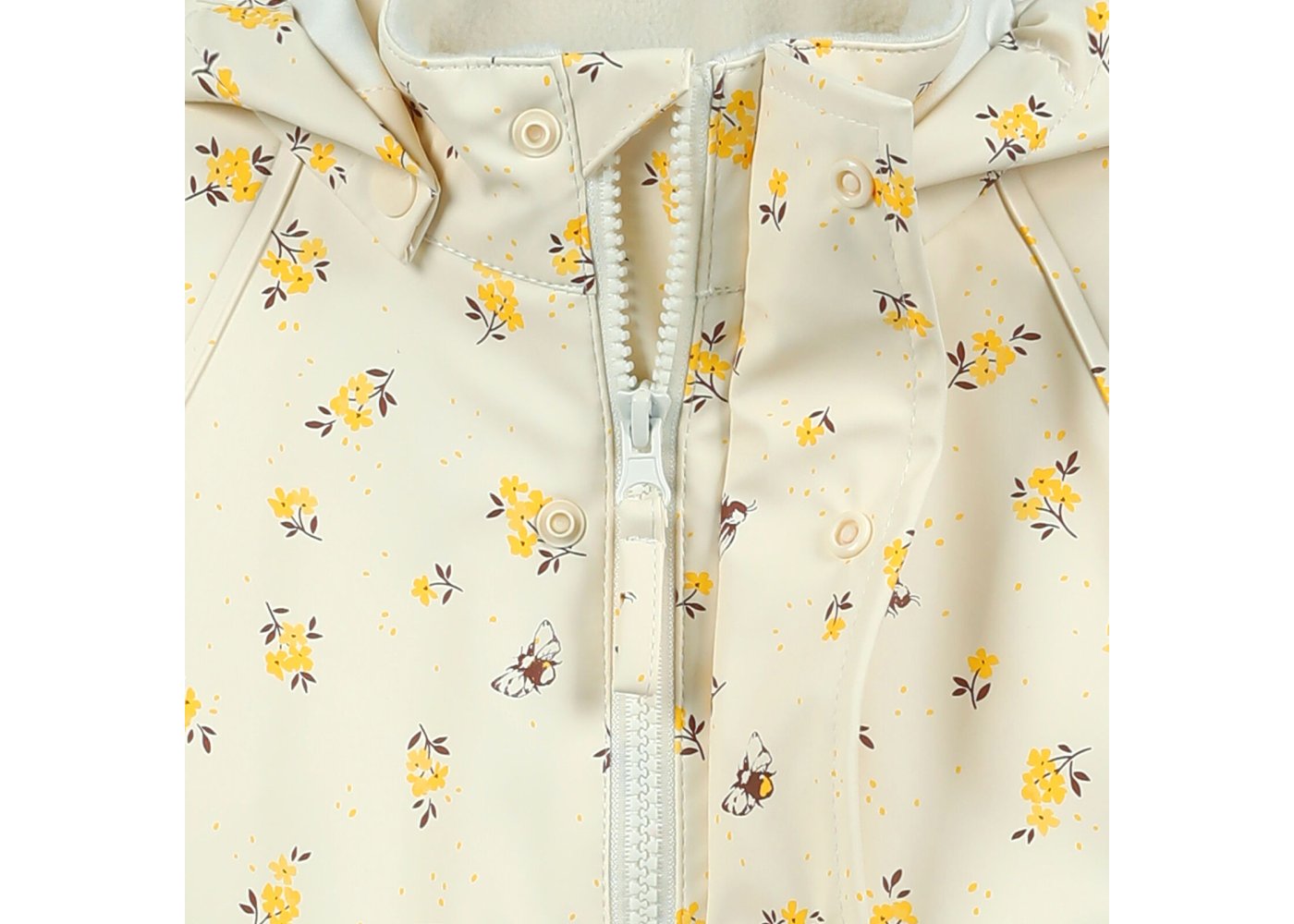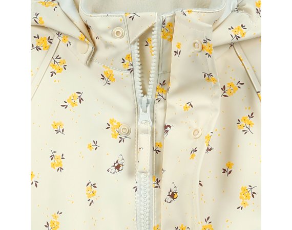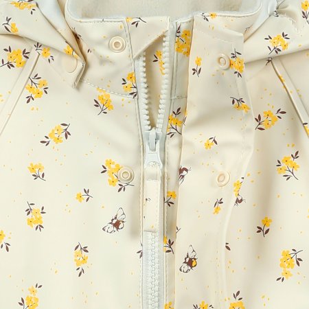 Praktisk og slidstærkt PU-regndragt med sødt bi- og blomsterprint.
