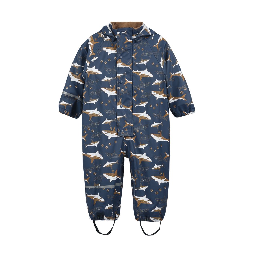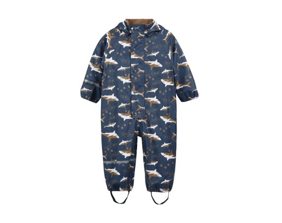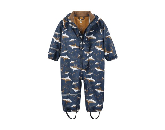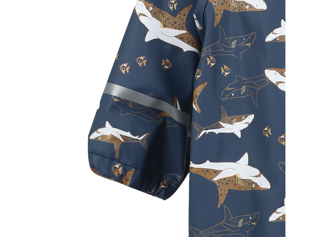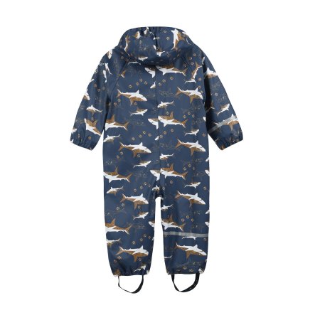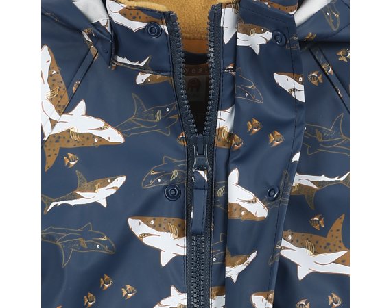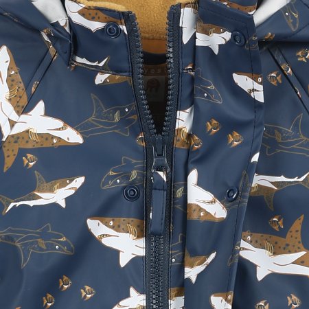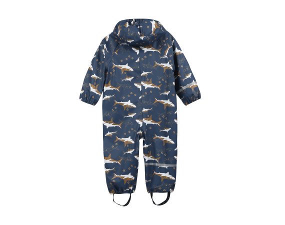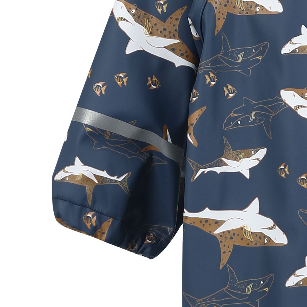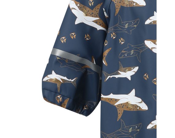 Praktisk og slidstærkt PU-regndragt med sødt print af hajer.