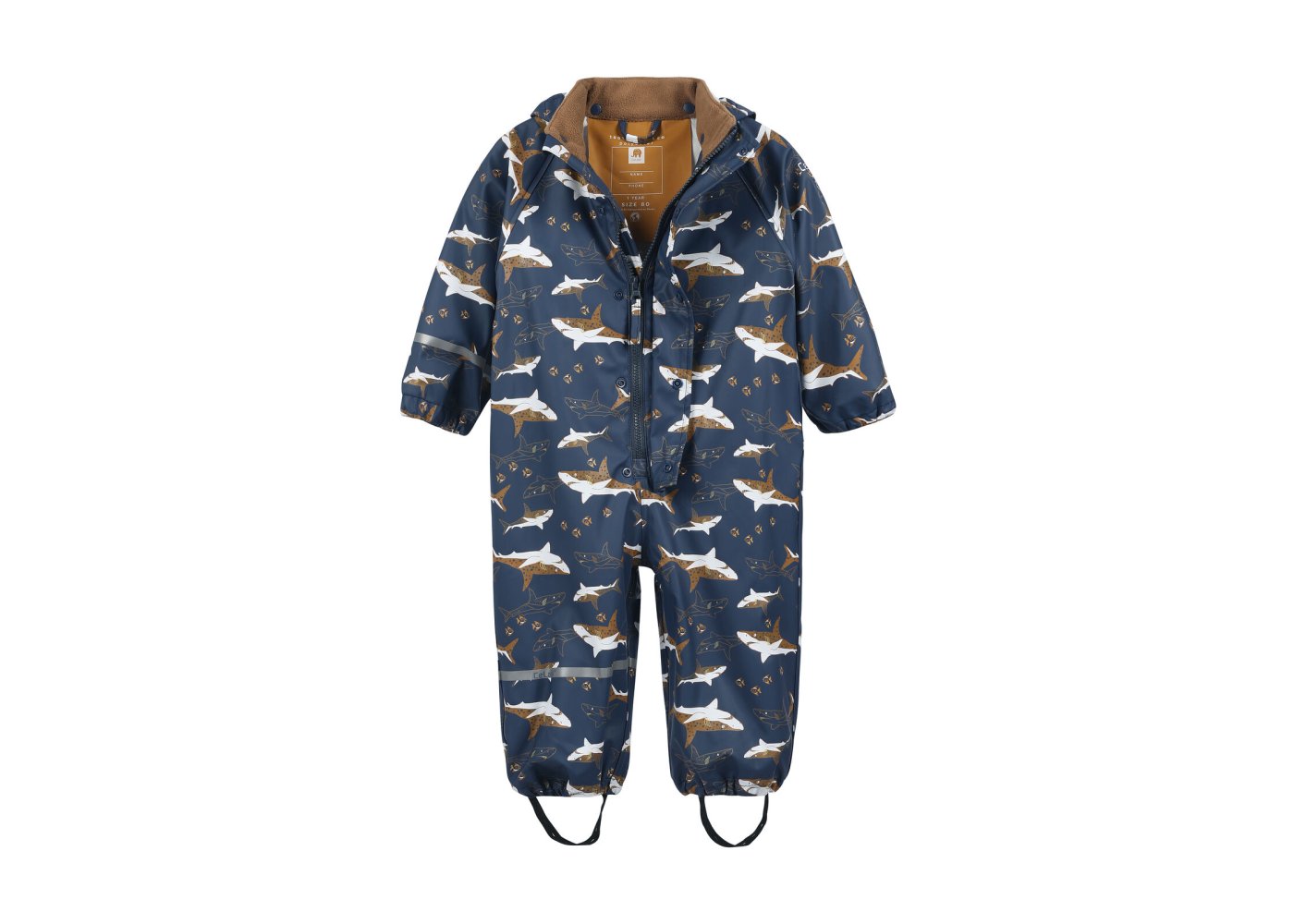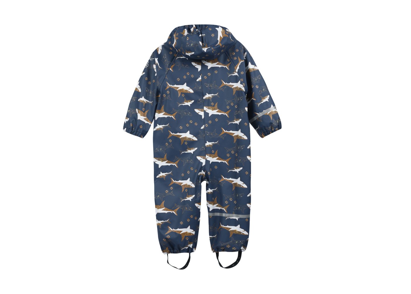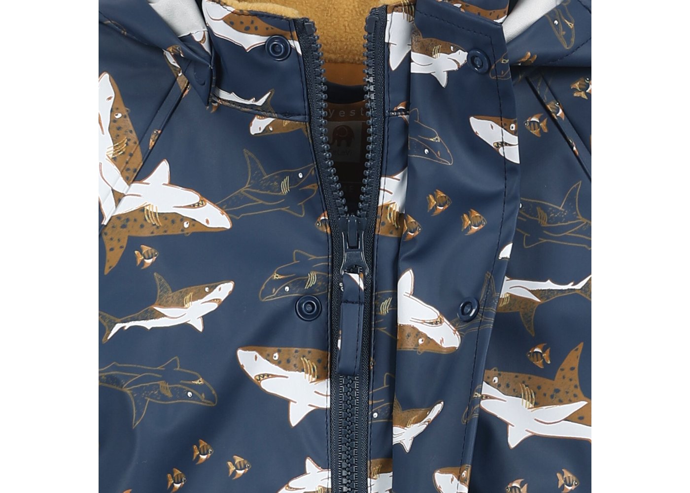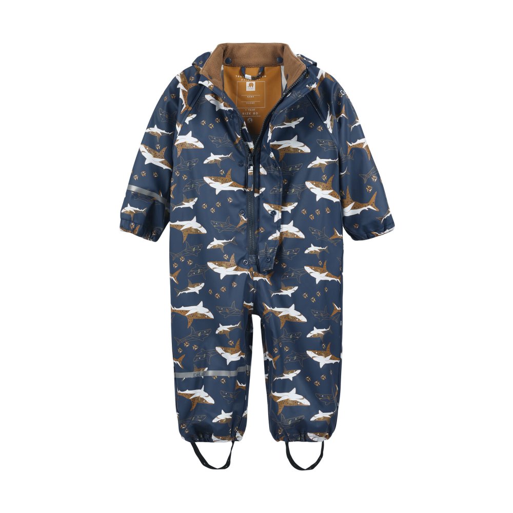 Praktisk og slidstærkt PU-regndragt med sødt print af hajer.