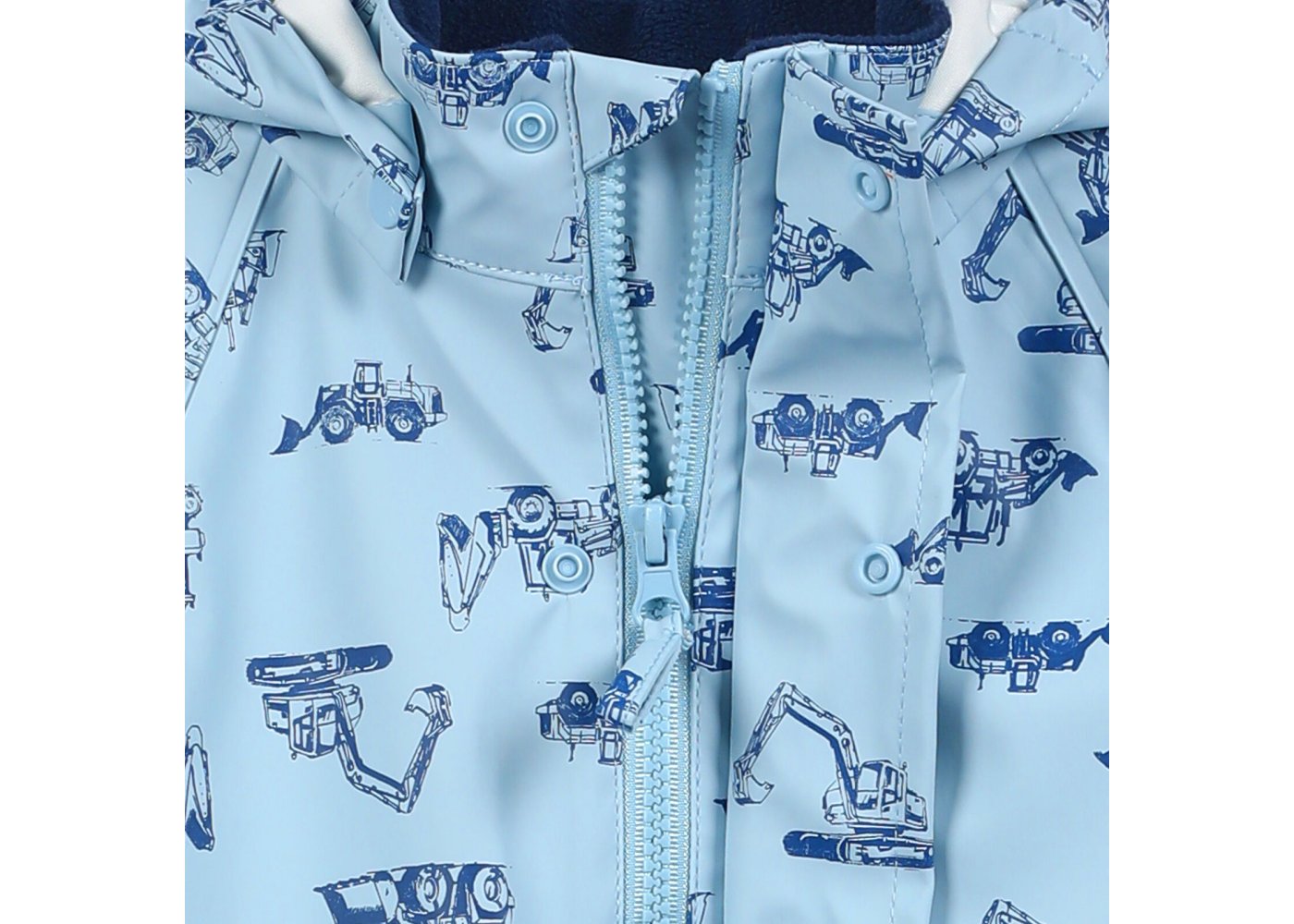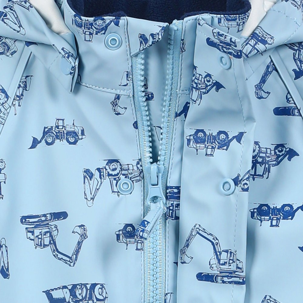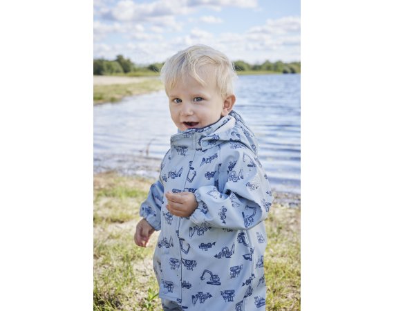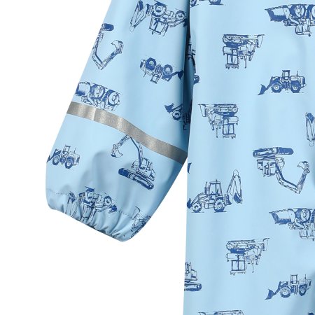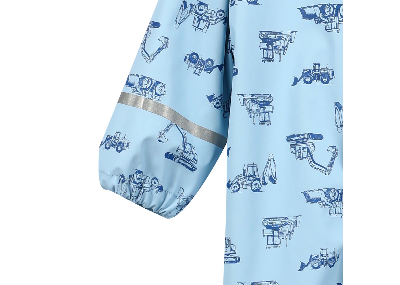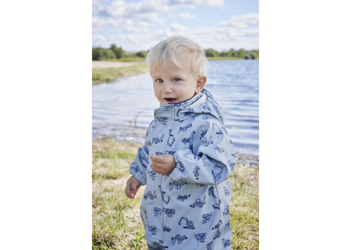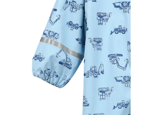 Praktisk og slidstærkt PU-regndragt med sjovt print af gravemaskiner.
