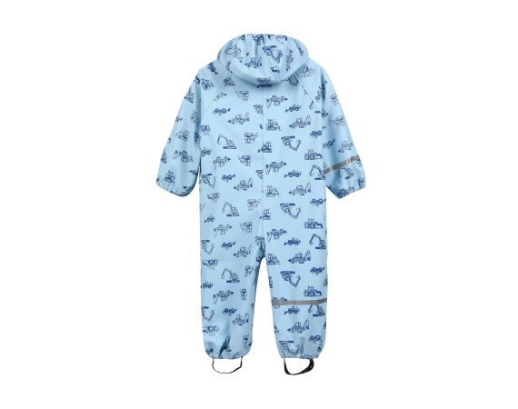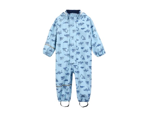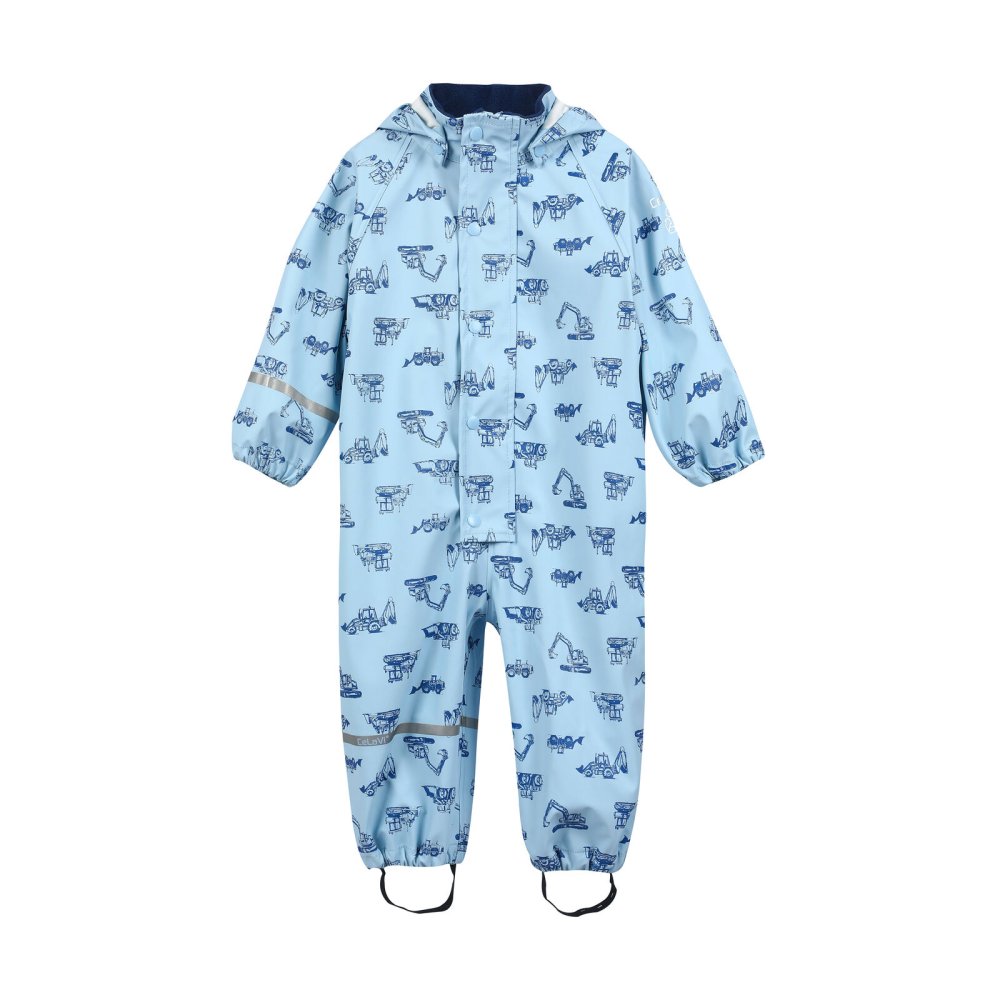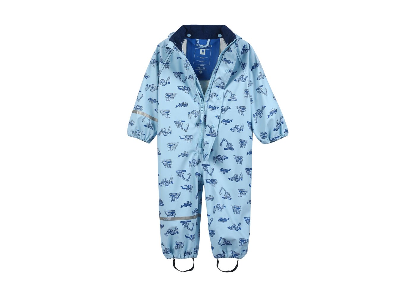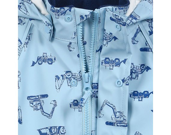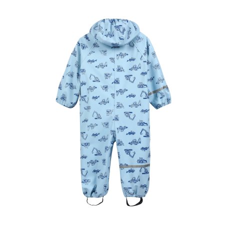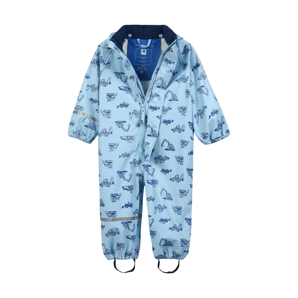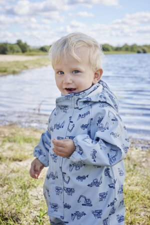 Praktisk og slidstærkt PU-regndragt med sjovt print af gravemaskiner.