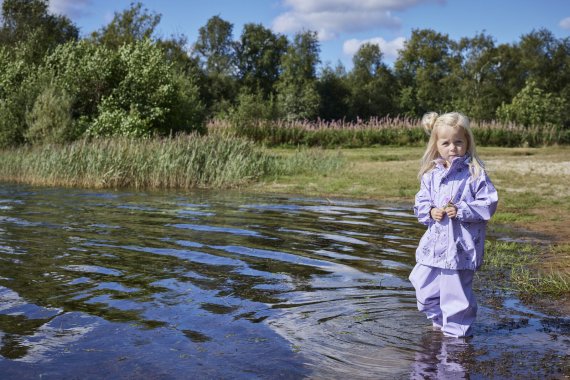 Kvalitetsregnsæt med et vandsøjletryk på 10.000 mm. og svejsede sømme, der gør sættet fuldstændig vind- og vandtæt og muliggør, at legen kan vare ved, uanset hvor længe, det har tænkt sig at regne!