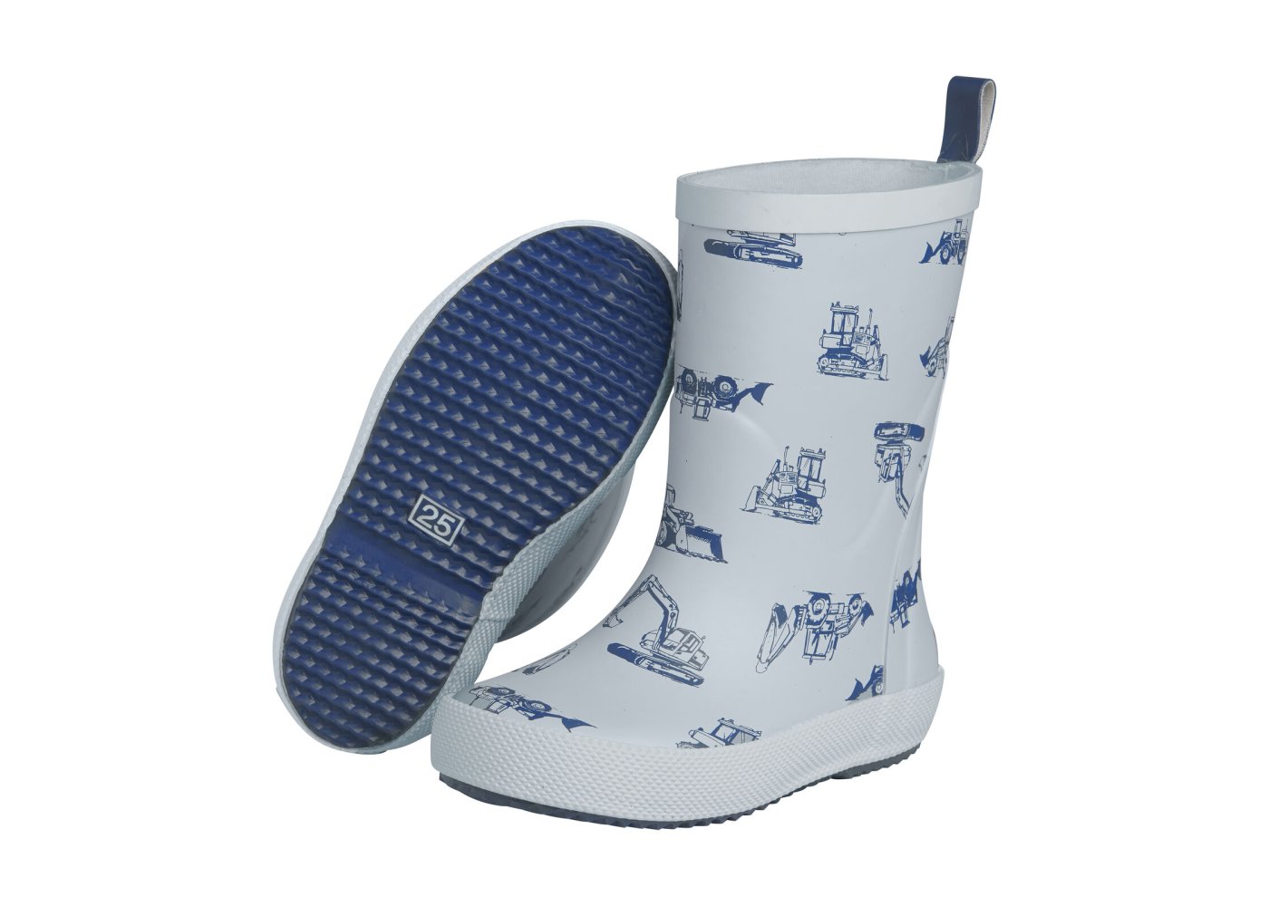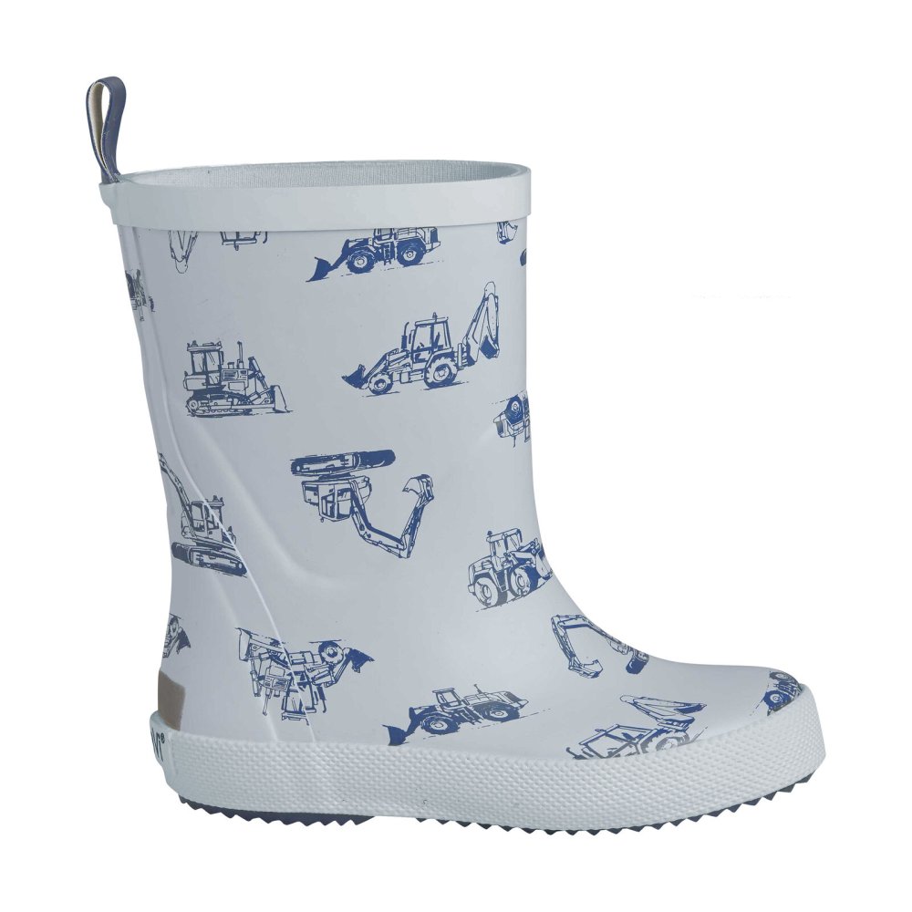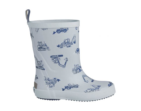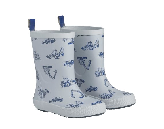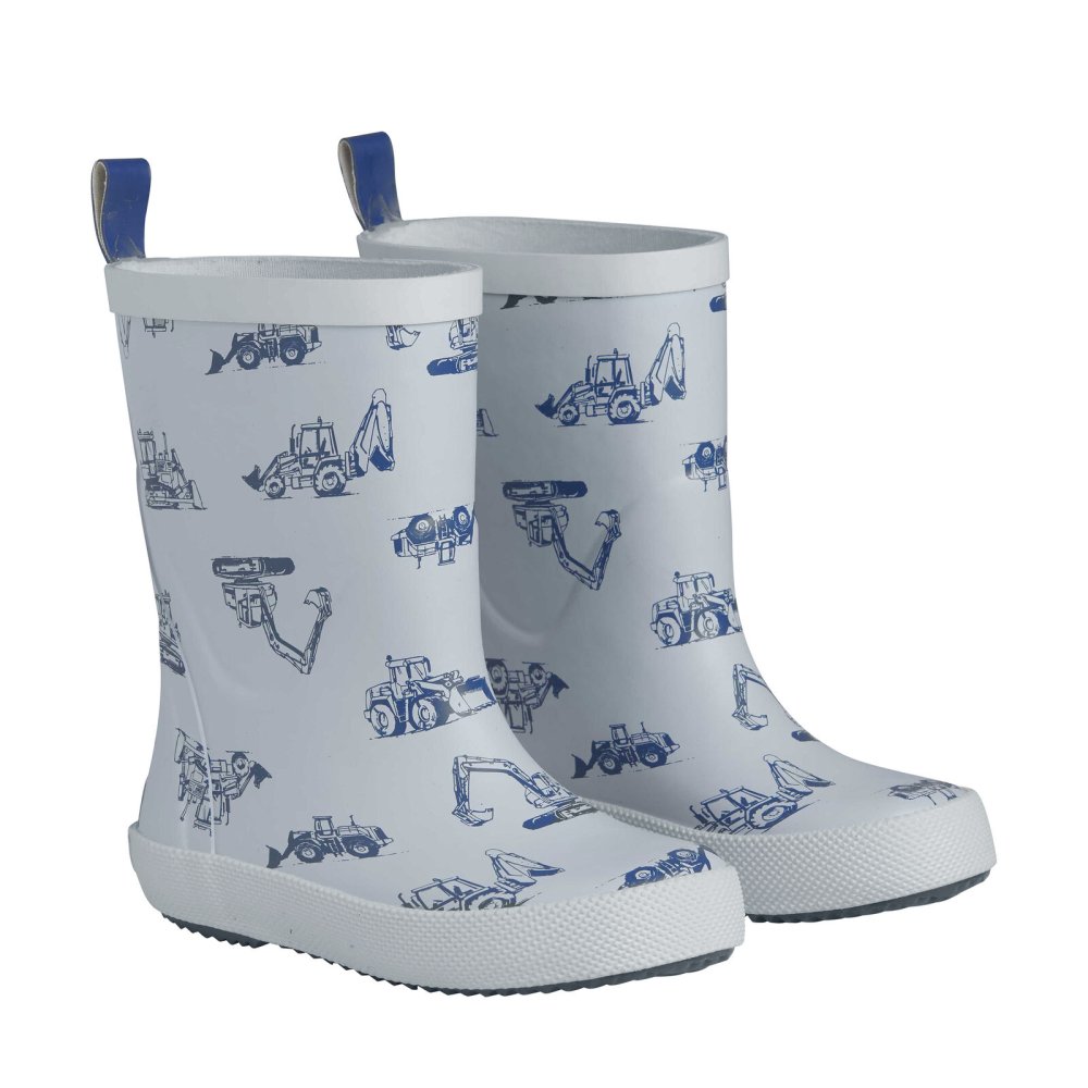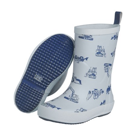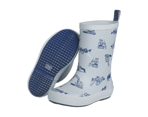 Kvalitetsgummistøvler med gravemaskiner. Støvlen har en let tekstilforing og udtagelige såler. Støvlen er smallere i hælen, der sikrer god komfort, når barnet skal lege i dem i flere timer.