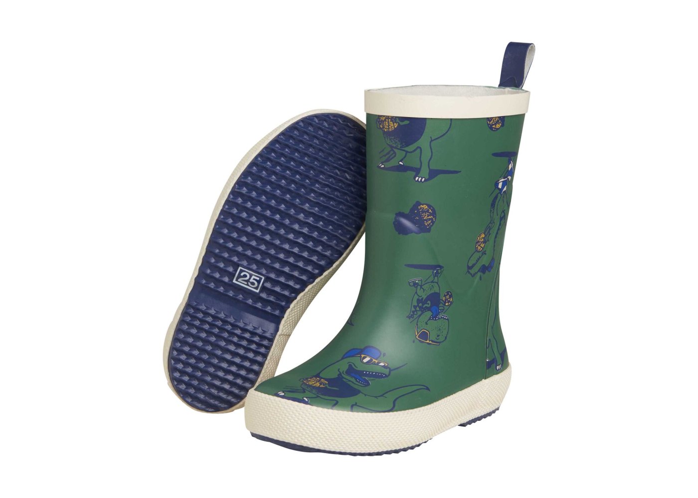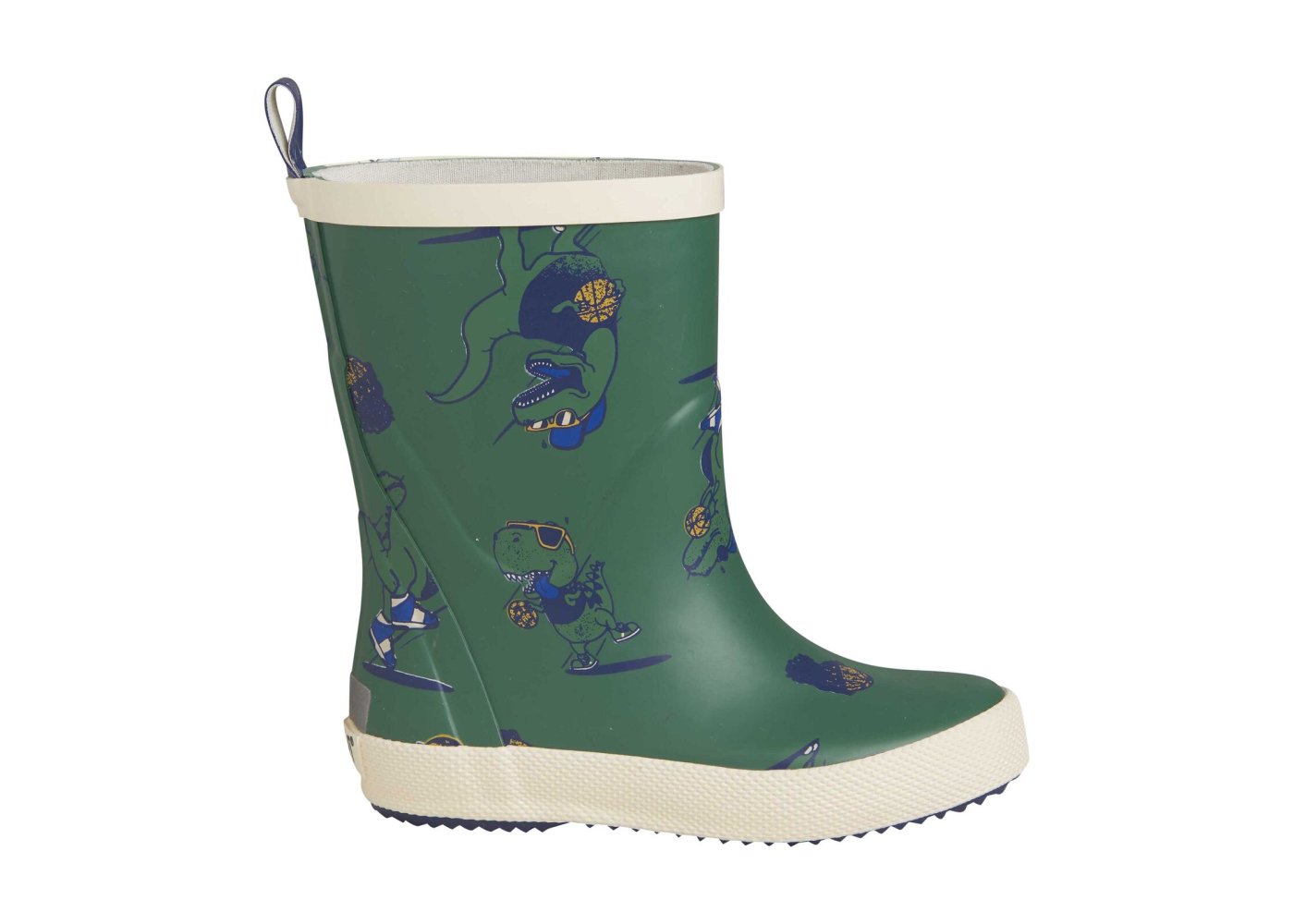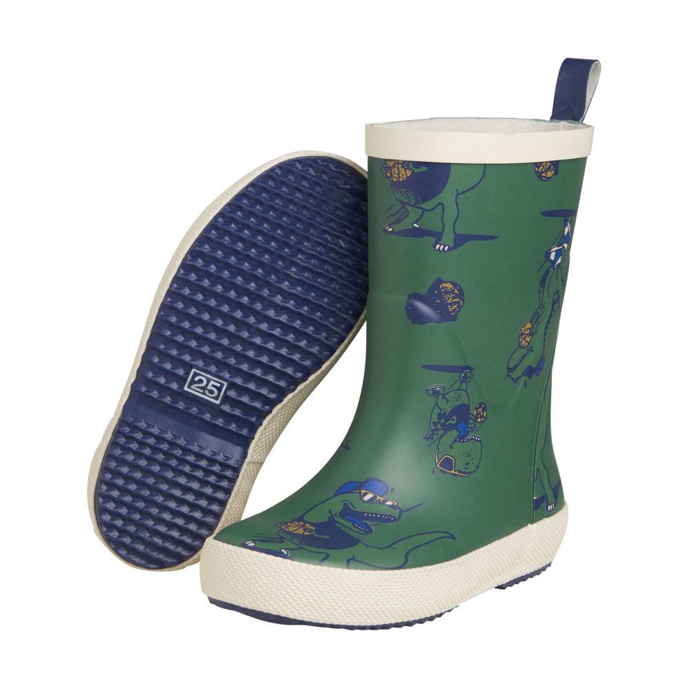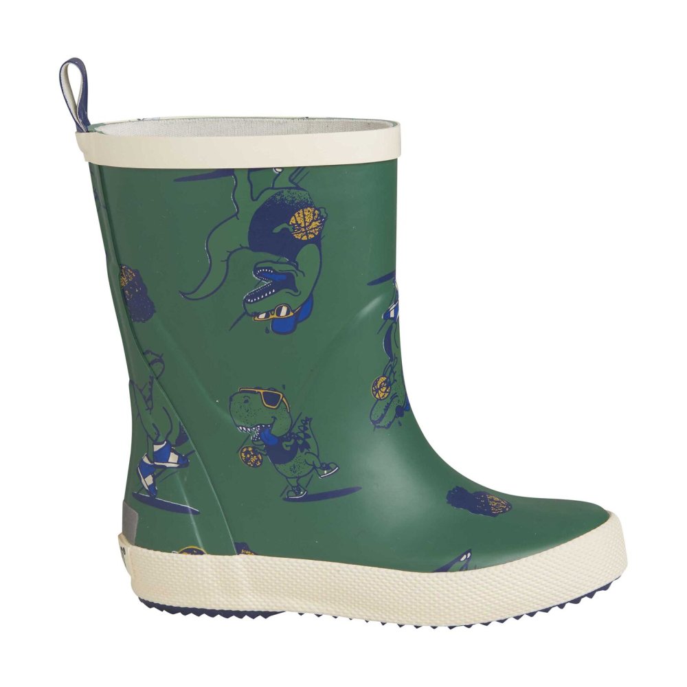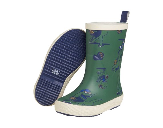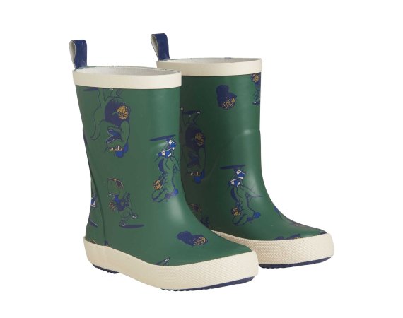 Kvalitetsgummistøvler med seje dinosaurer med solbriller. Støvlen har en let tekstilforing og udtagelige såler. Støvlen er smallere i hælen, der sikrer god komfort, når barnet skal lege i dem i flere timer.
