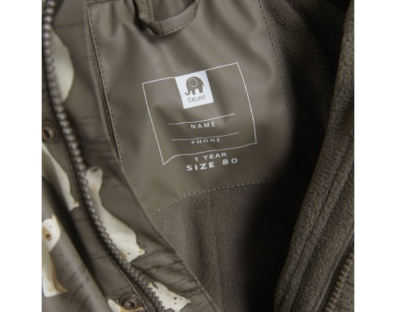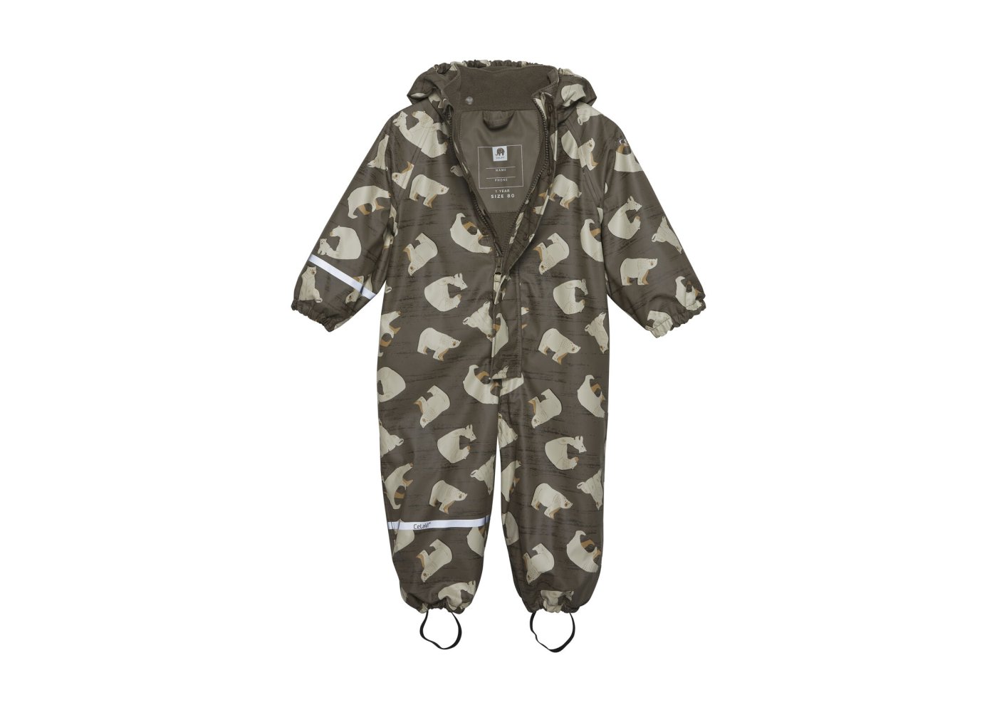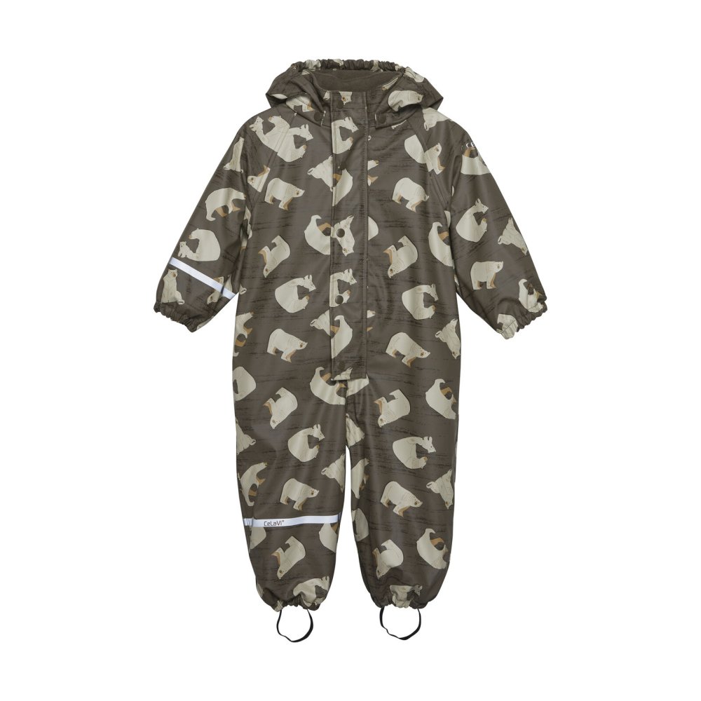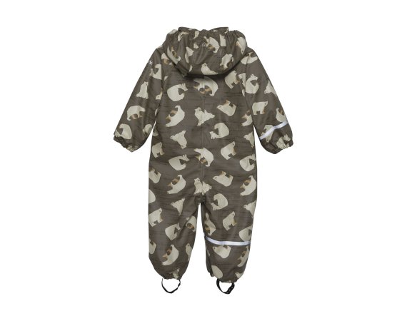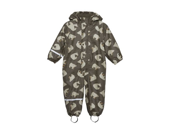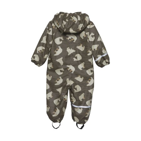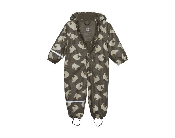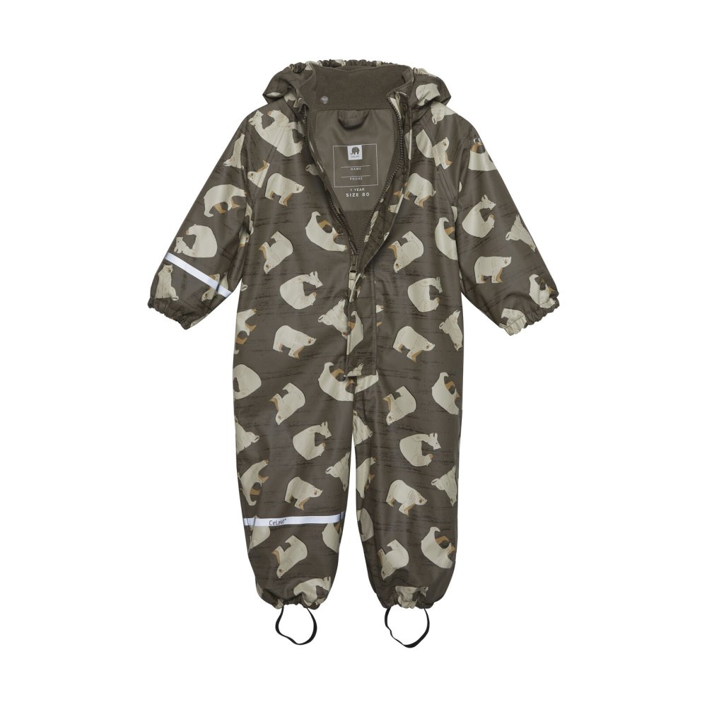 Praktisk og slidstærk recycled PU-regn dragt i grøn med isbjørne print og lækkert fleecefoer.