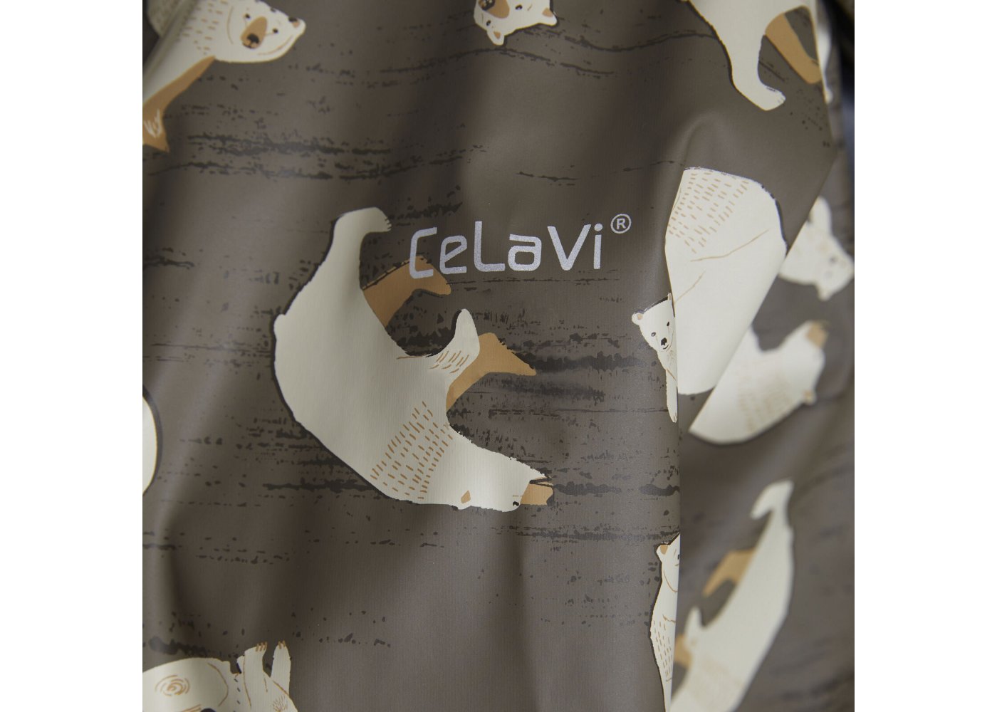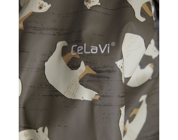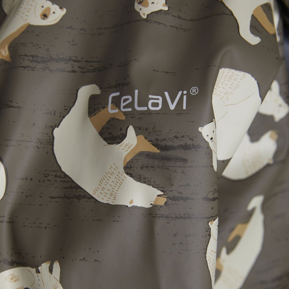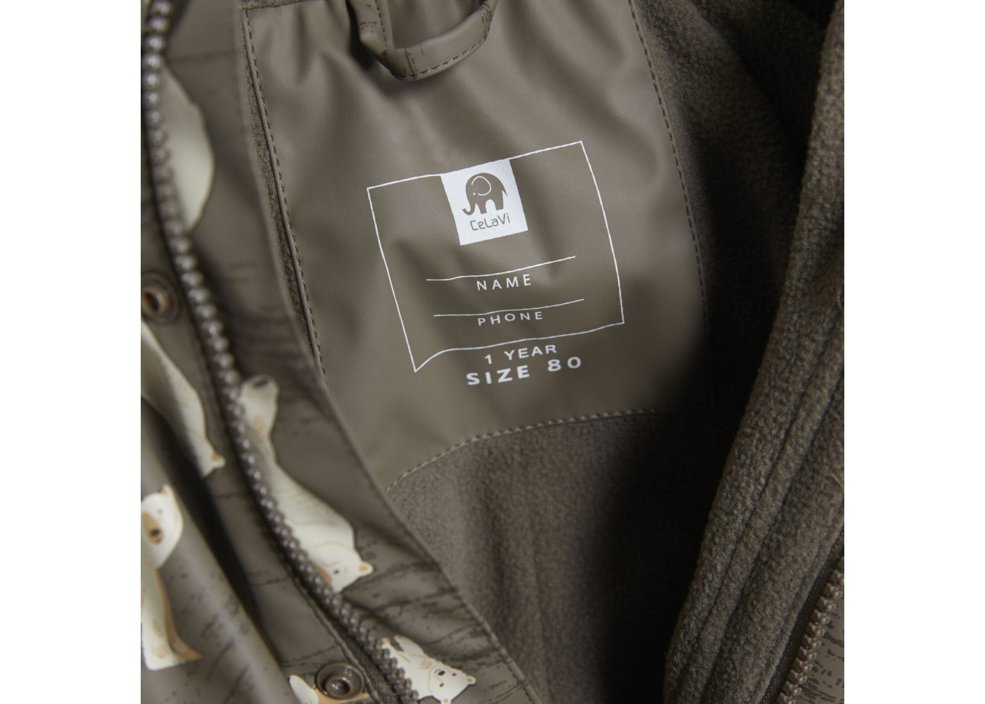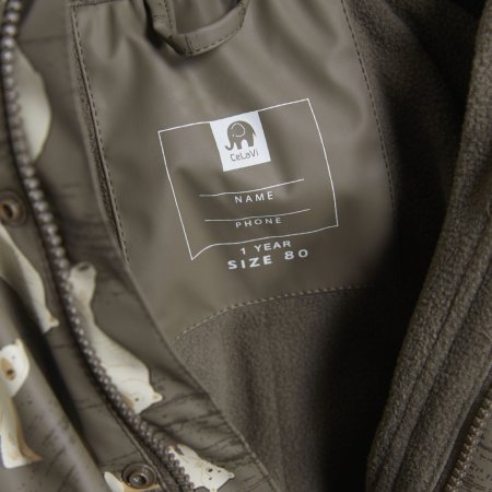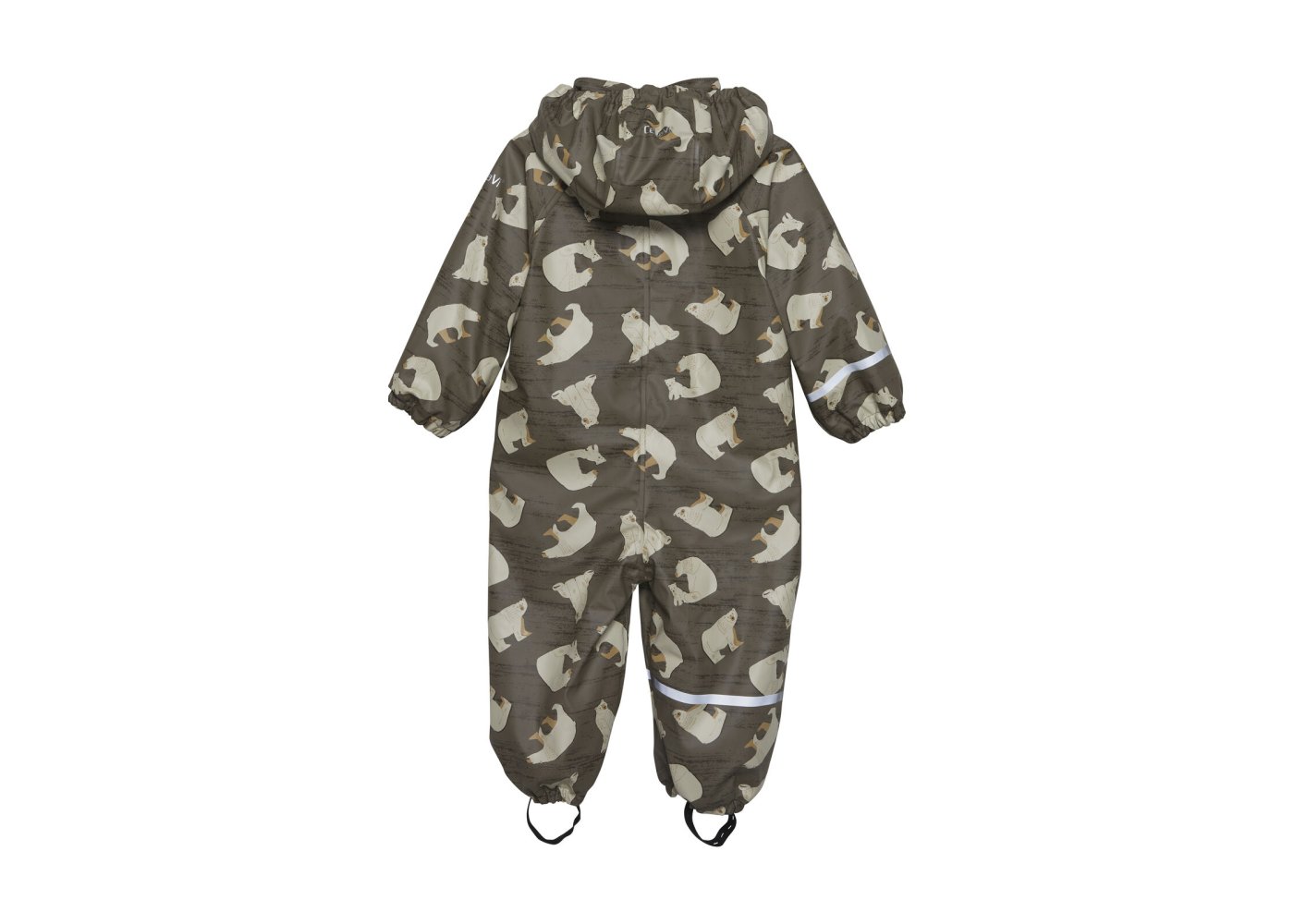 Praktisk og slidstærk recycled PU-regn dragt i grøn med isbjørne print og lækkert fleecefoer.
