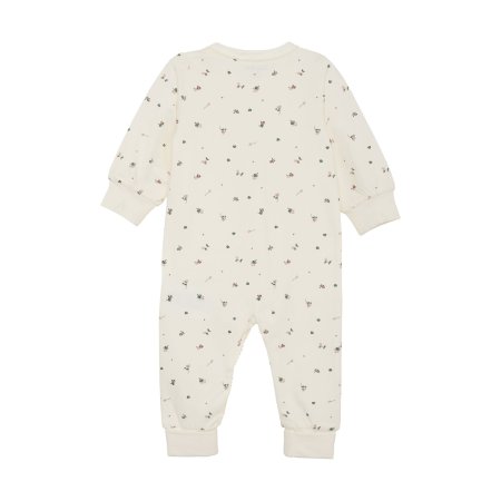 Natdragten har brede ribkanter i alle åbninger, og er udstyret med praktiske trykknapper fra hals til den ene ankel, der gør den let at få på og af igen.