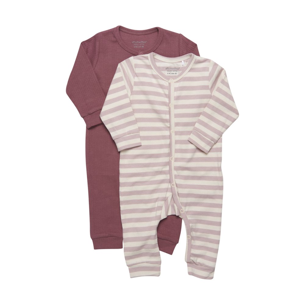 Pakken indeholder en bodysuit med striber og en ensfarvet bodysuit.