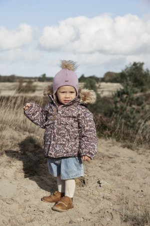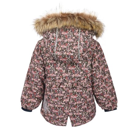 Lækker åndbar, vind- og vandtæt vinterjakke med blomsterprint og fin flæsedetalje fra Minymo.