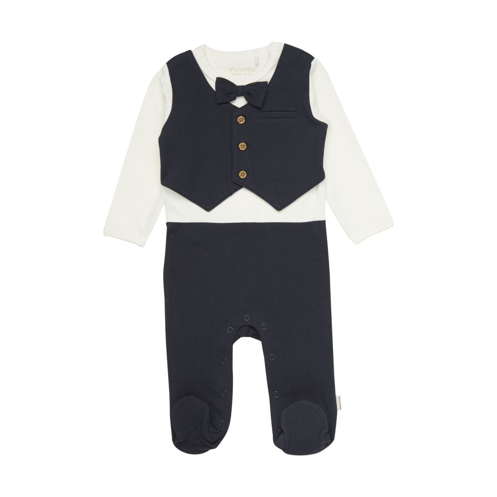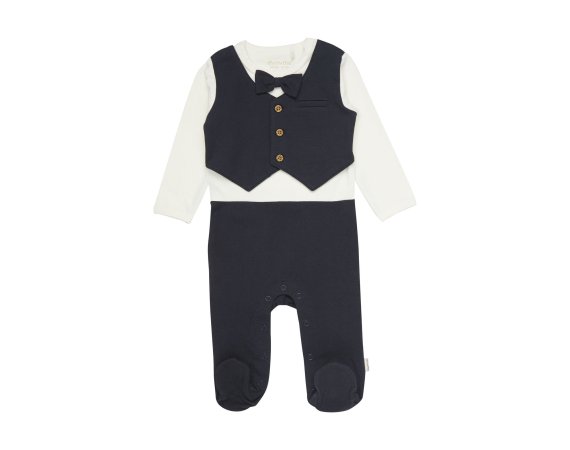 Smart festlig dragt med butterfly og vest til en sej lille dreng.Dragten har fødder og lukkes med trykknapper mellem ben.