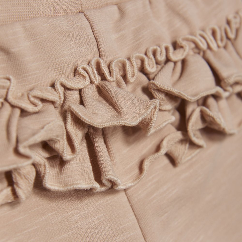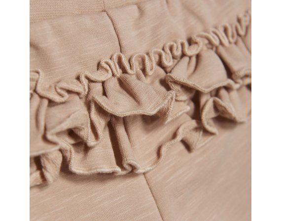 Lækre sweat pants med bred elastik i livet og flæser bagpå fra Minymo.Der fås body og cardigan i samme skønne farve.