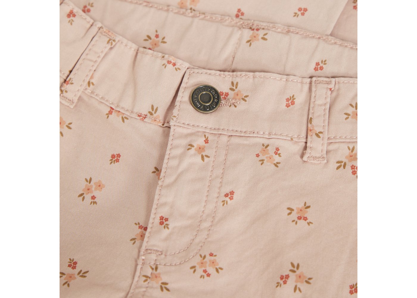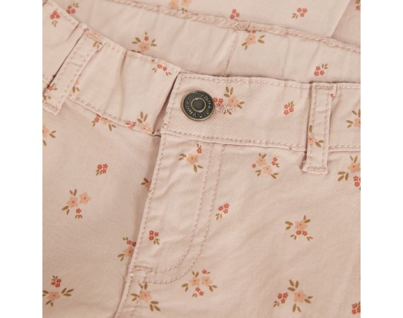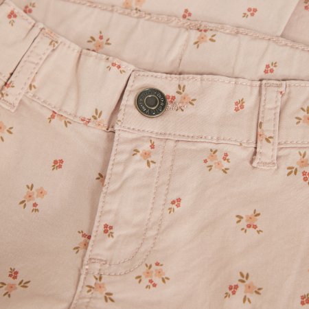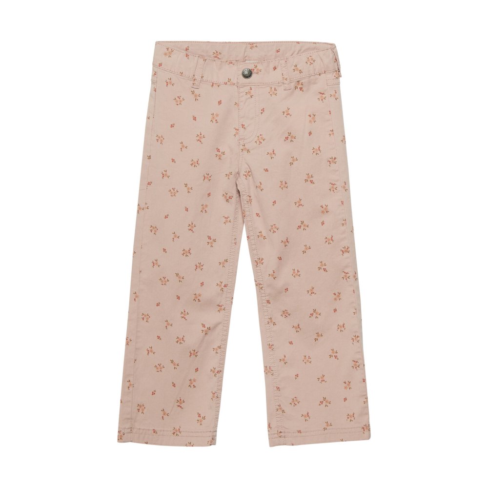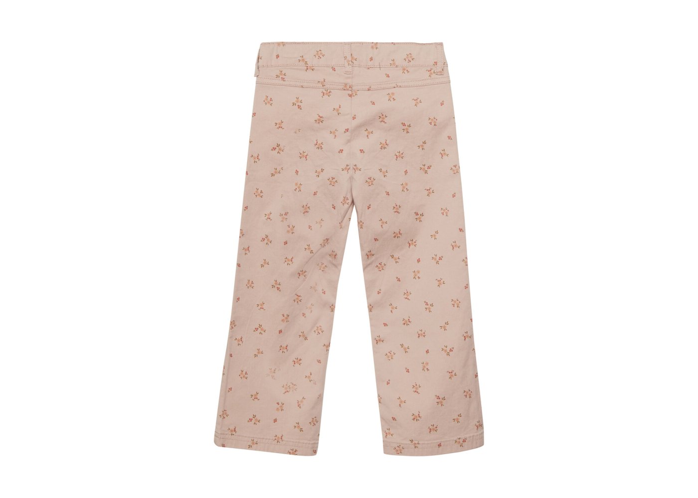 Smarte bukser med blomster fra Minymo.Bukserne har elastik, bæltestropper og knap i livet.
