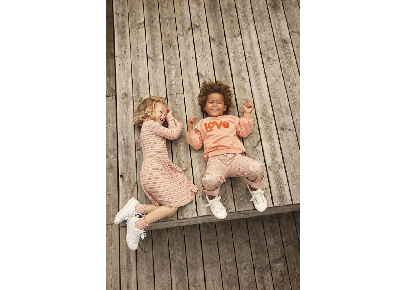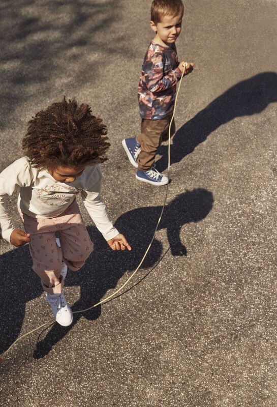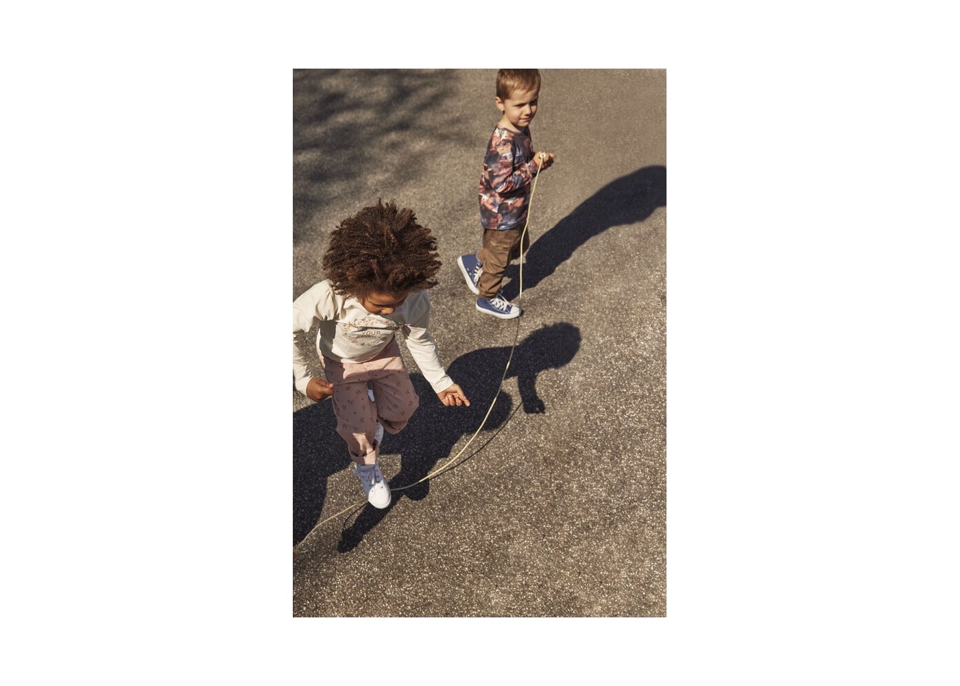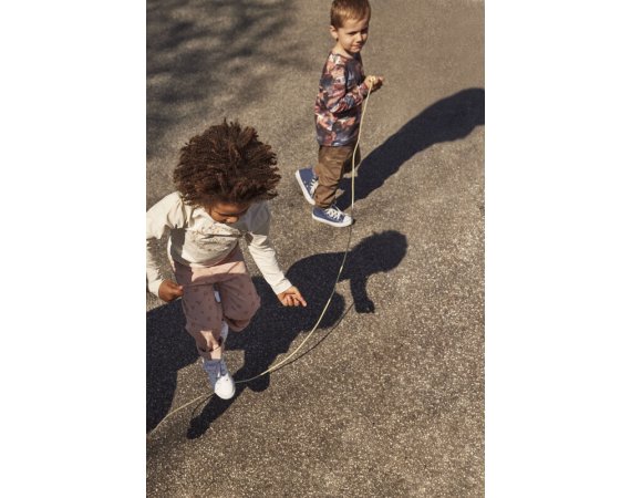 Smarte bukser med blomster fra Minymo.Bukserne har elastik, bæltestropper og knap i livet.