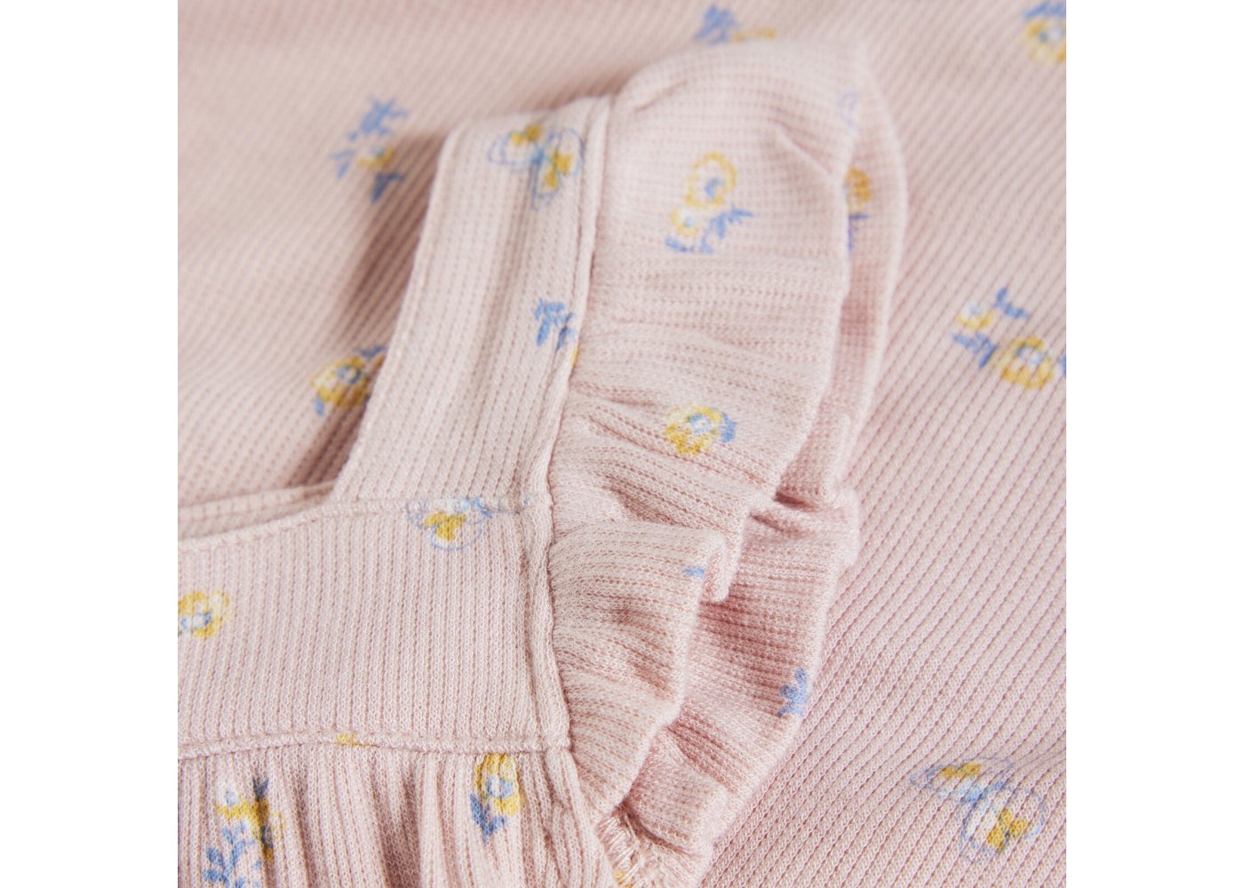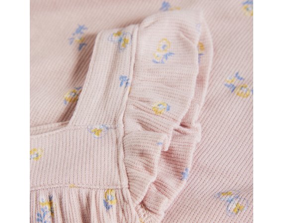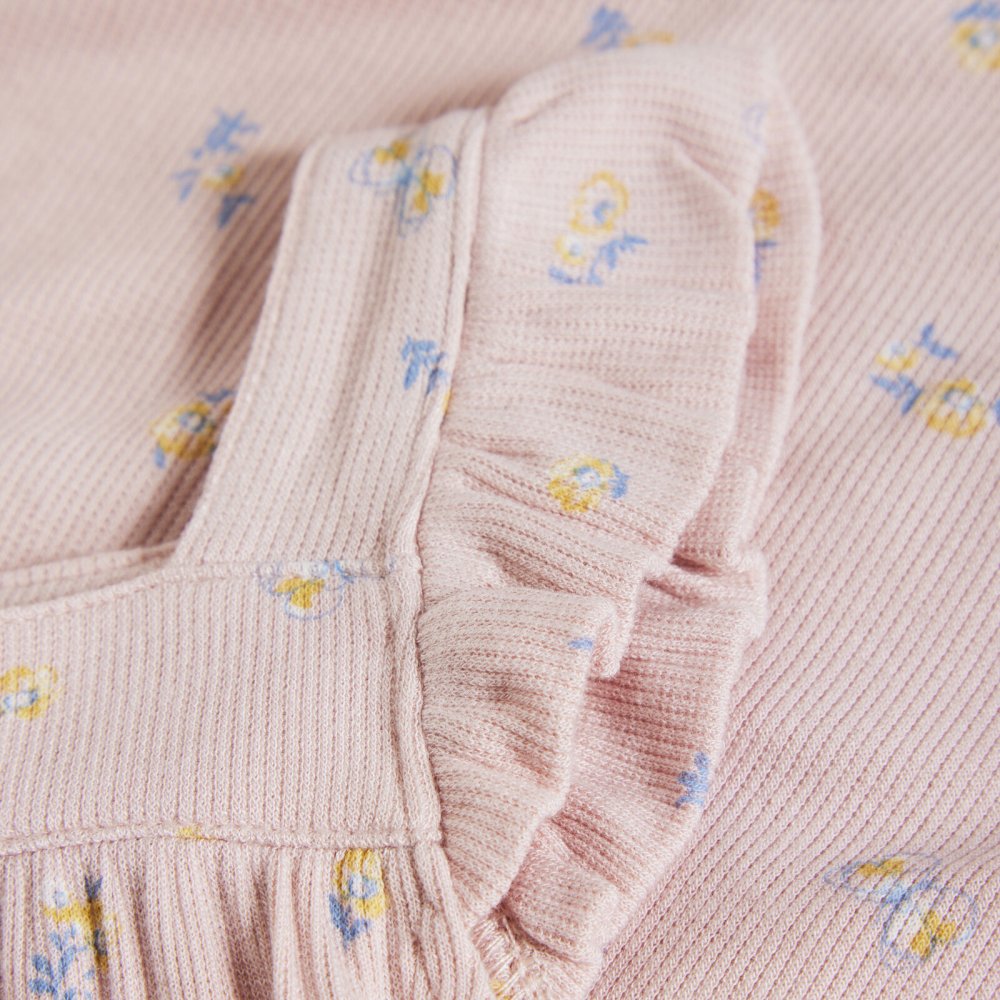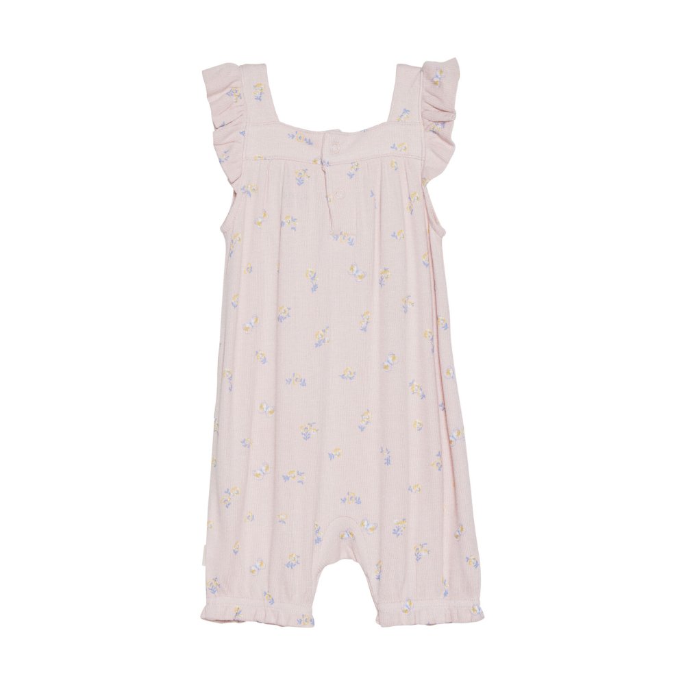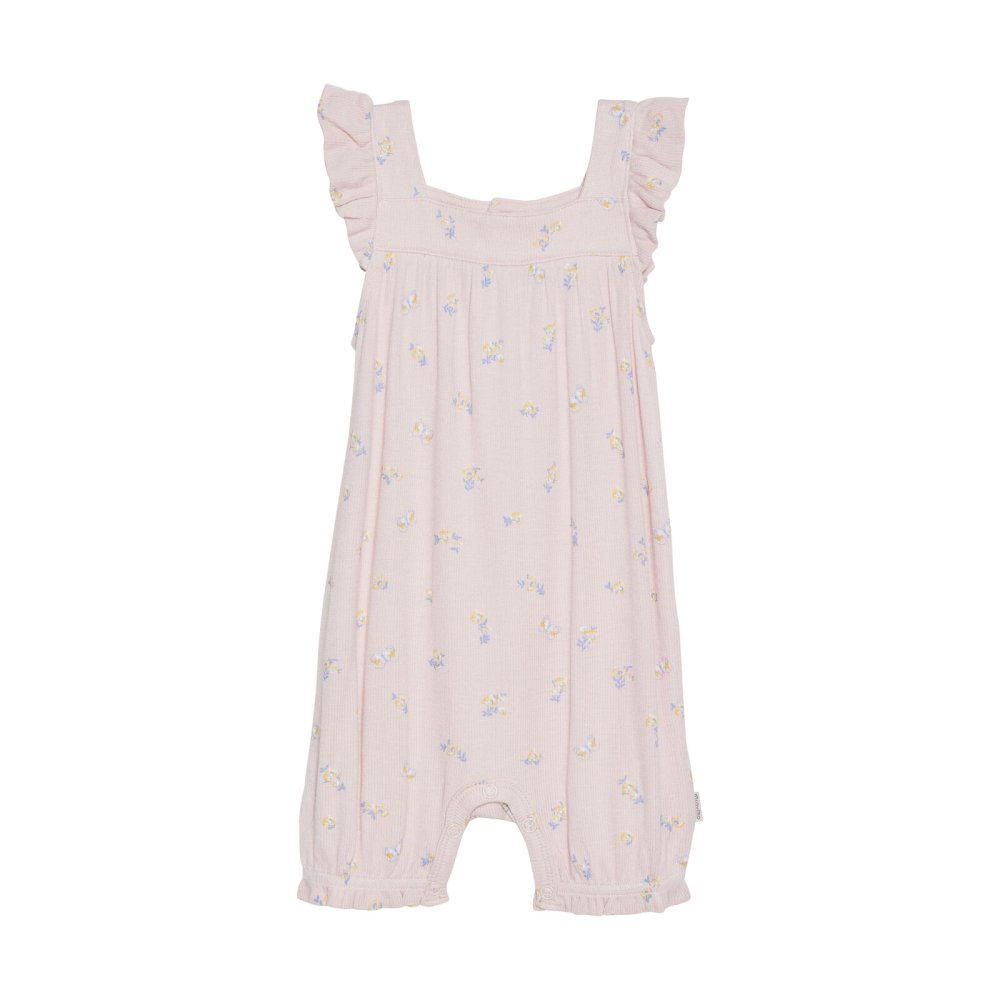 Yndig rib romper med fine blomster og flæser fra Minymo.