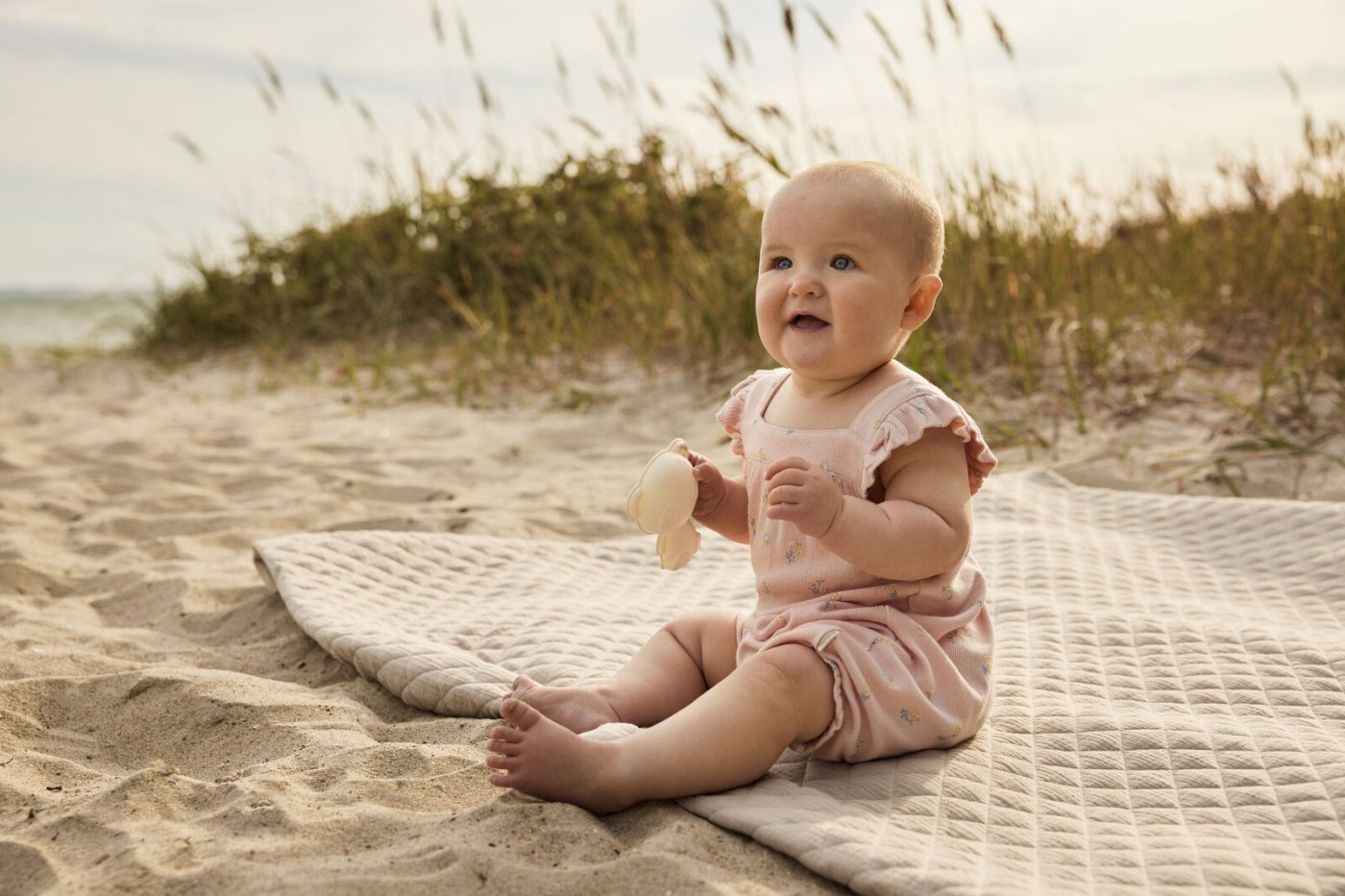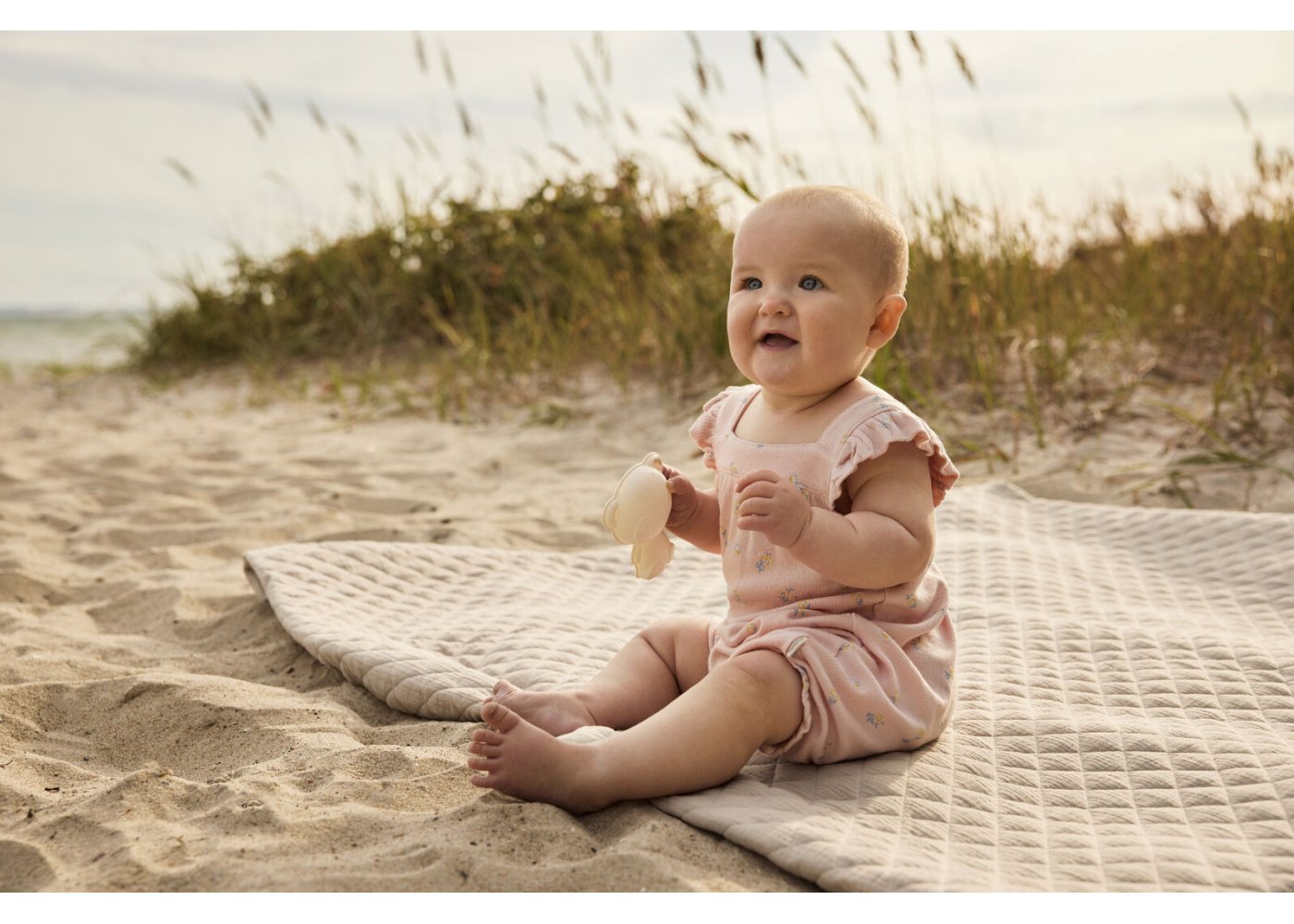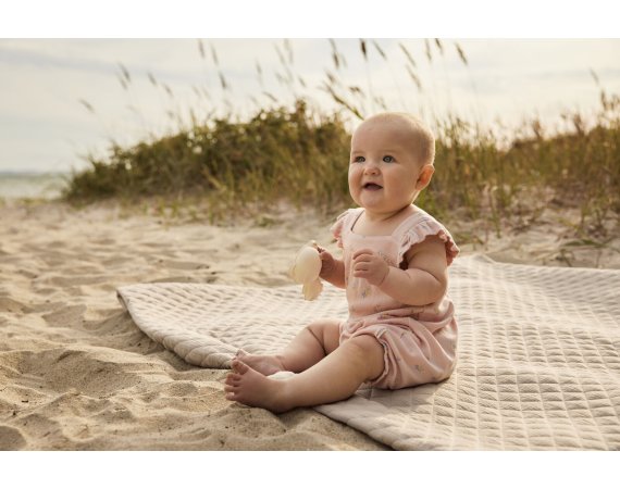 Romperen har flæsekant på skuldre og elastik med fin flæsekant i ben åbninger.