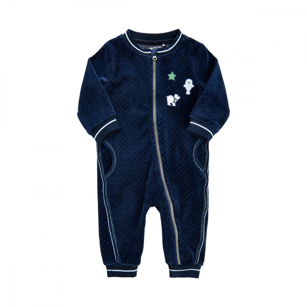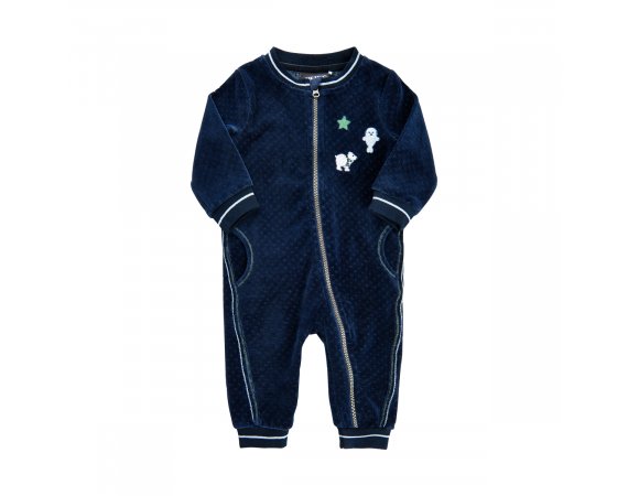 Heldragt med lommer og en lang gennemgående lynlås med hagebeskytter.