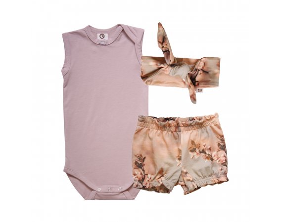 Lækkert og yndigt sommersæt fra Müsli - Sættet består af en body, et par bloomers og et hårbånd
