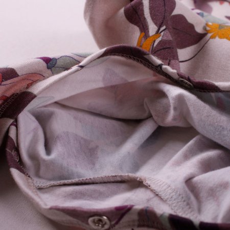 Den har en bred rib ved håndled og ankler og lukkes med trykknapper imellem ben.
