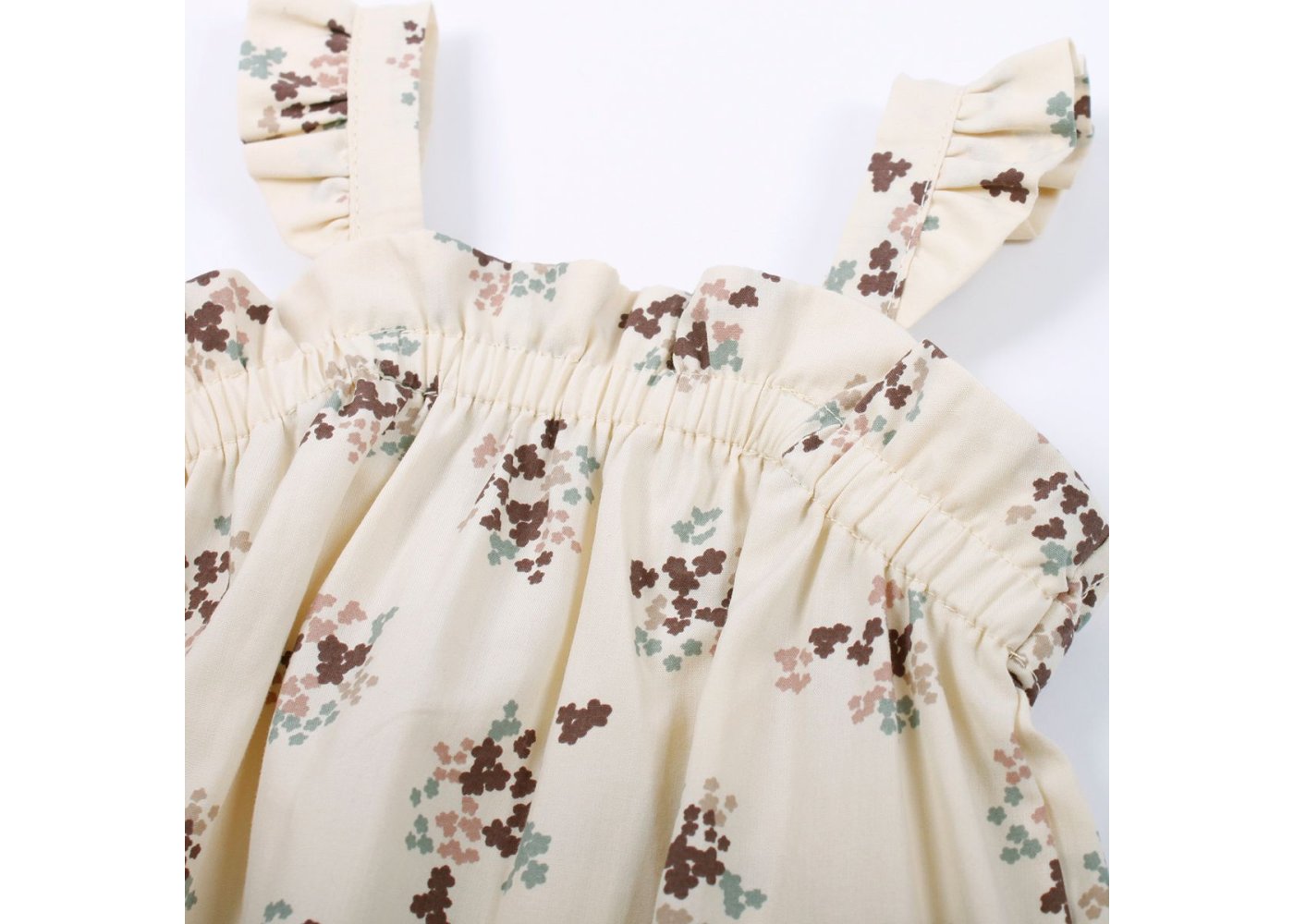 Yndig sommerdragt med smukt blomsterprint og fine flæser på stropper fra Müsli.
