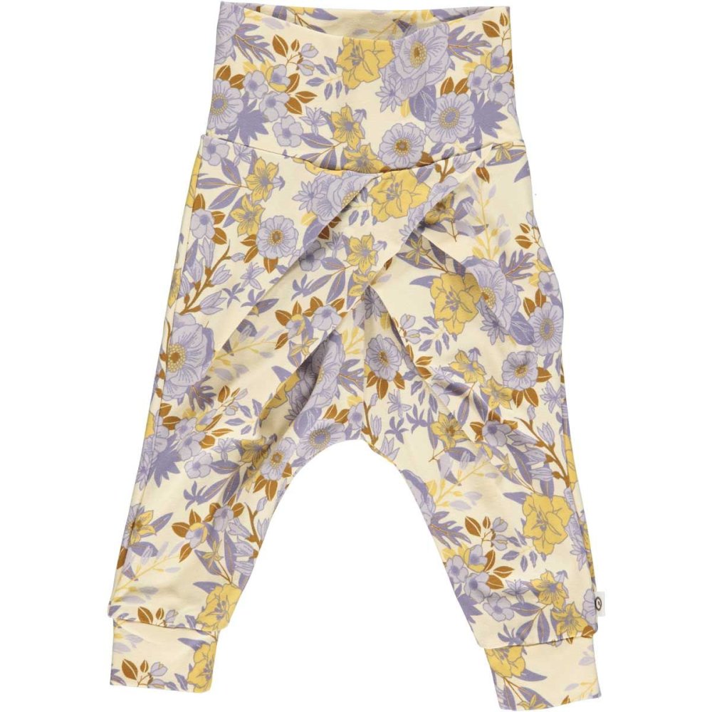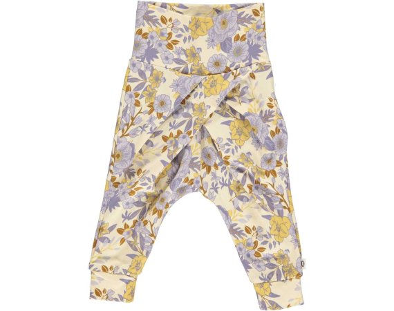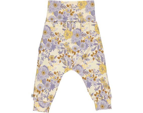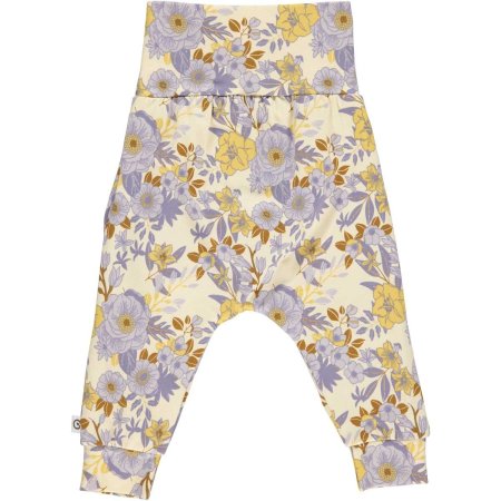 Buksen har ribkant ved ankler og en bred ribkant i livet, der kan foldes efter behov.