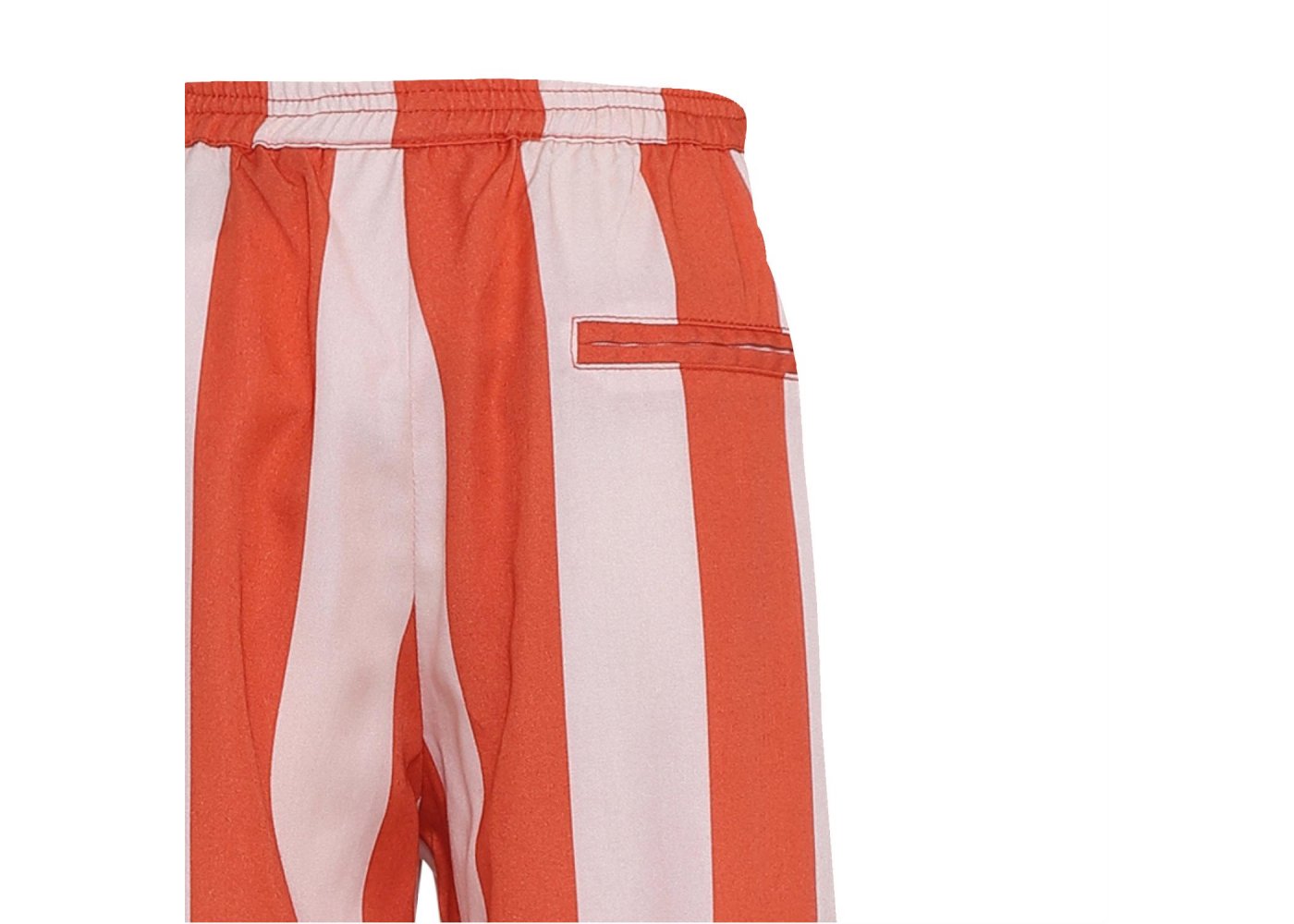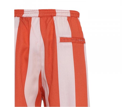 Bukserne har lommer i sider, bred elastik talje og opslag ved ankler.