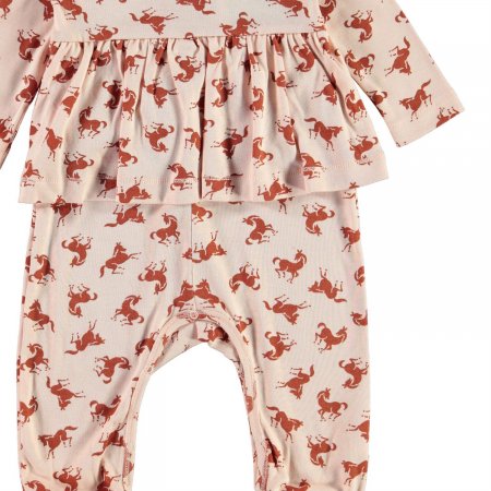 Lækker rosa baby dragt med hesteprint fra Molo.