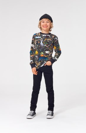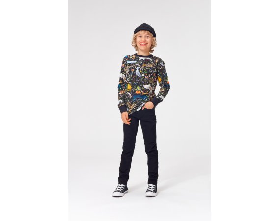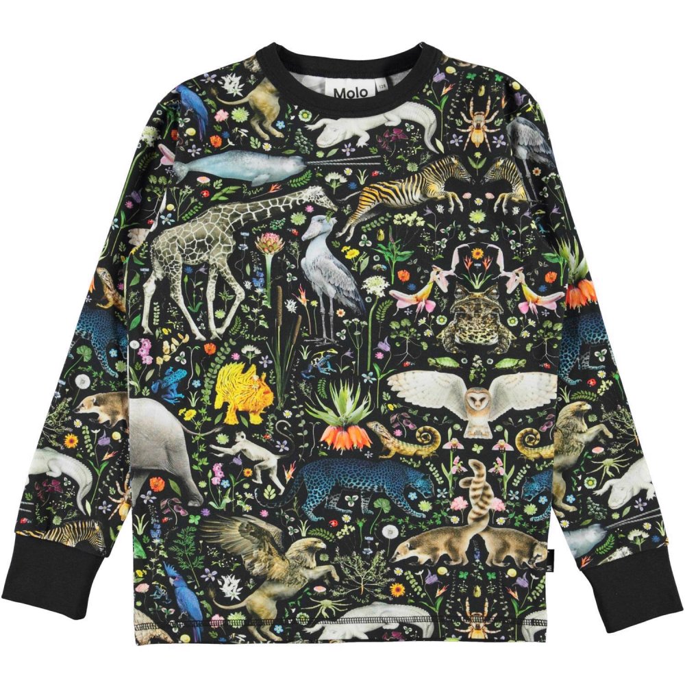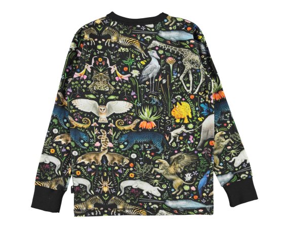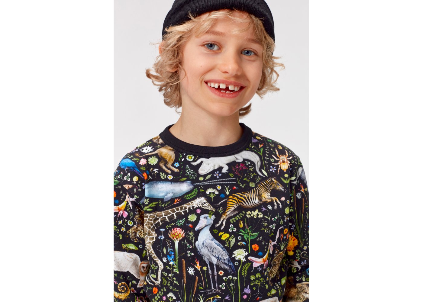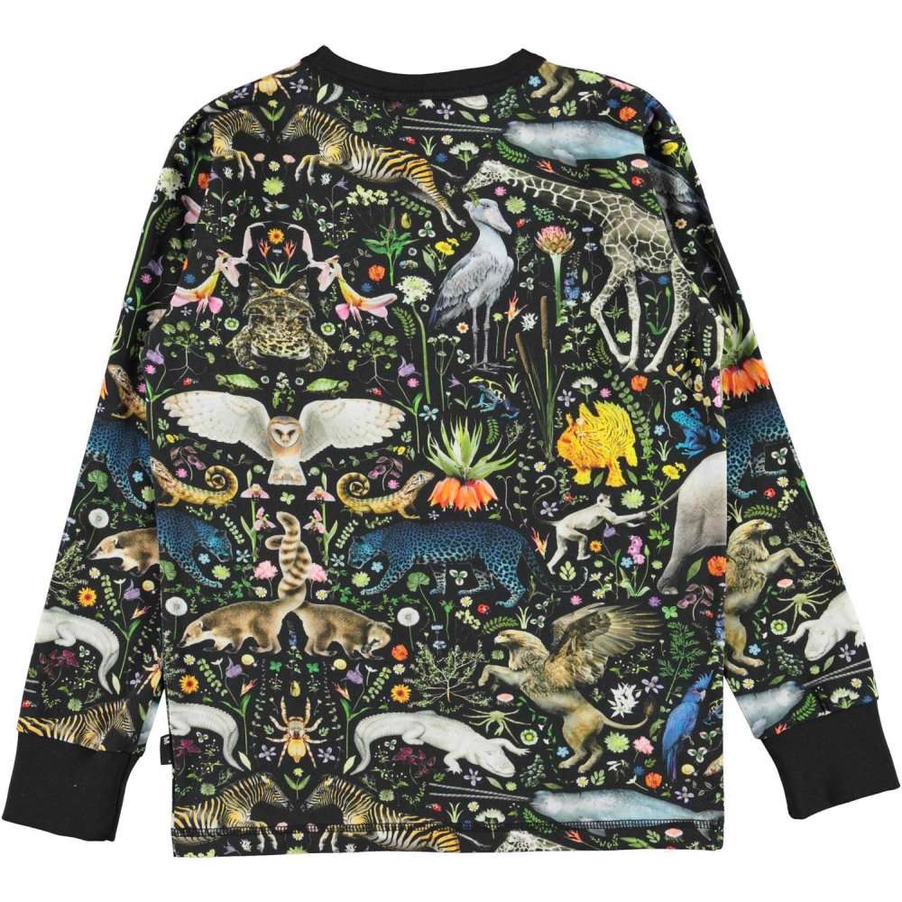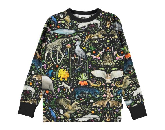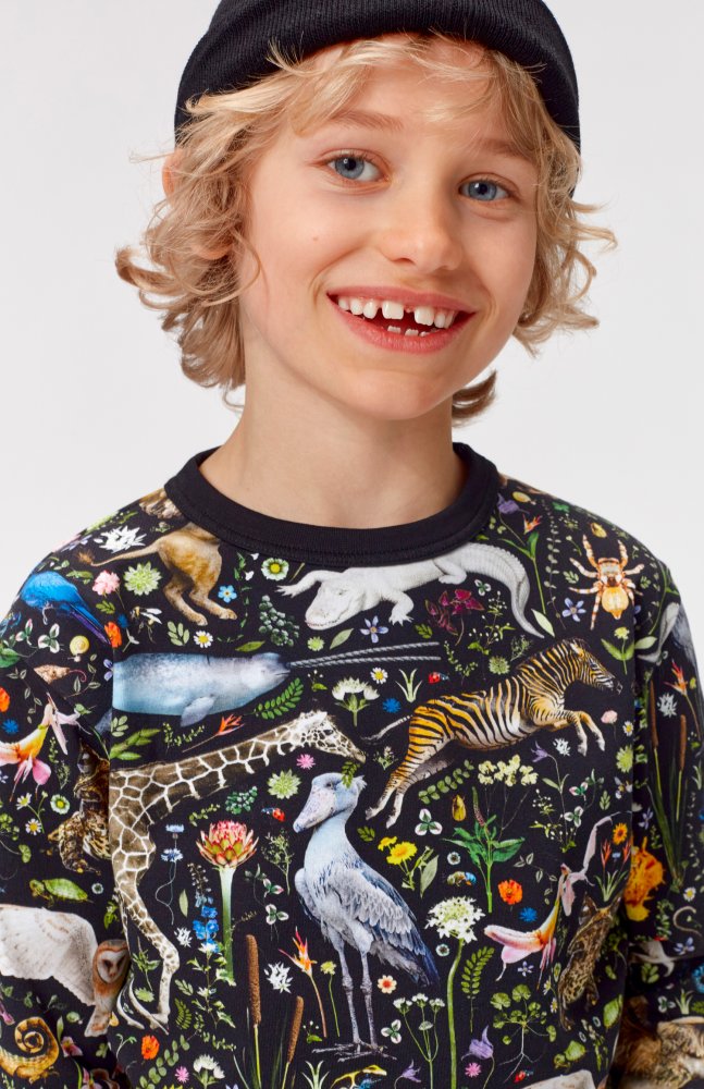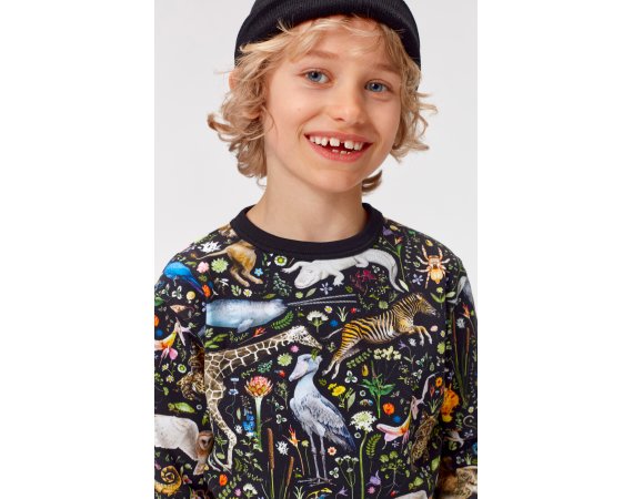 T-shirten er flot pyntet med vilde dyr, fisk og kryb i mange forskellige farver.