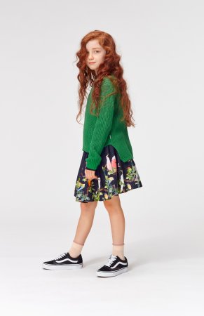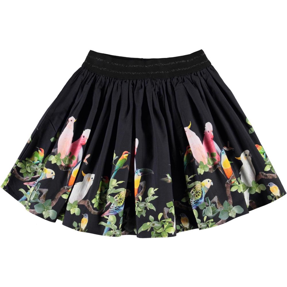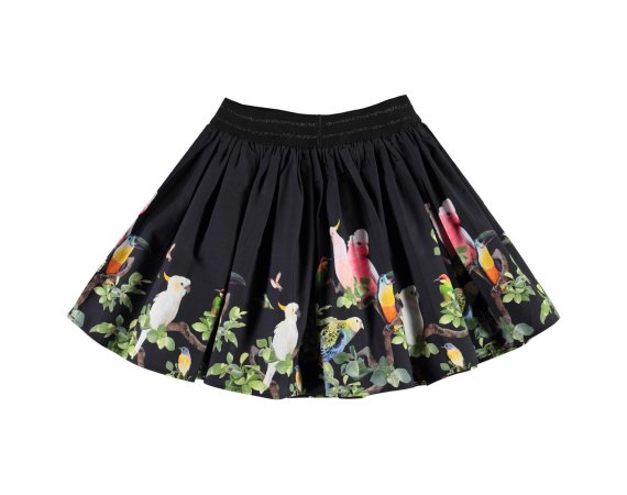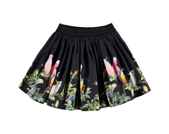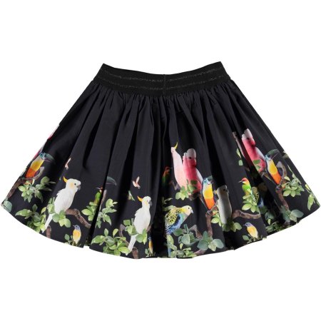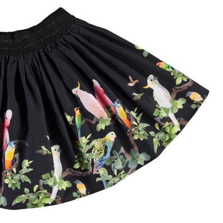 Smuk sort nederdel med det sødeste print af eksotiske fugle og papegøjer.