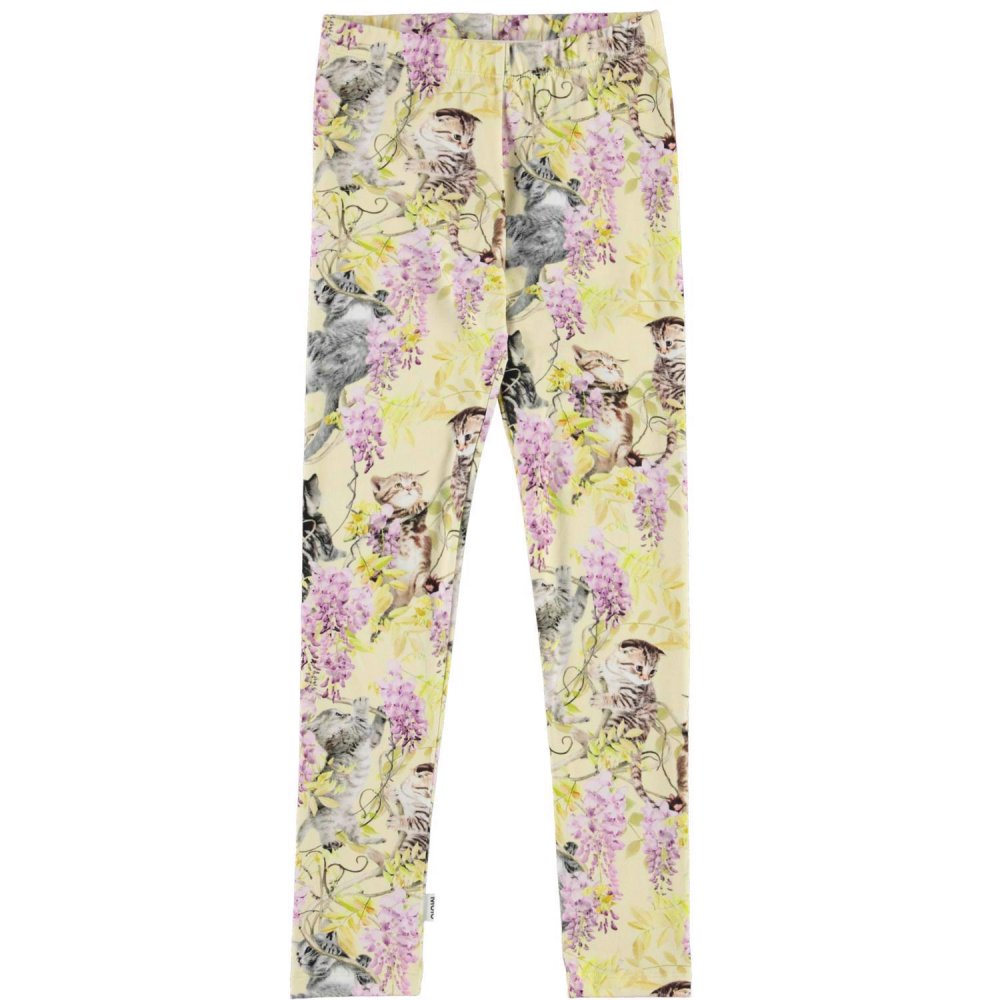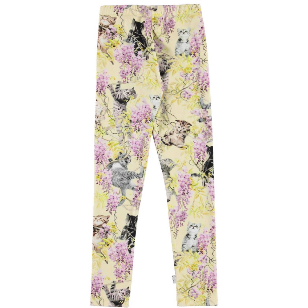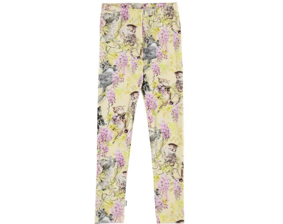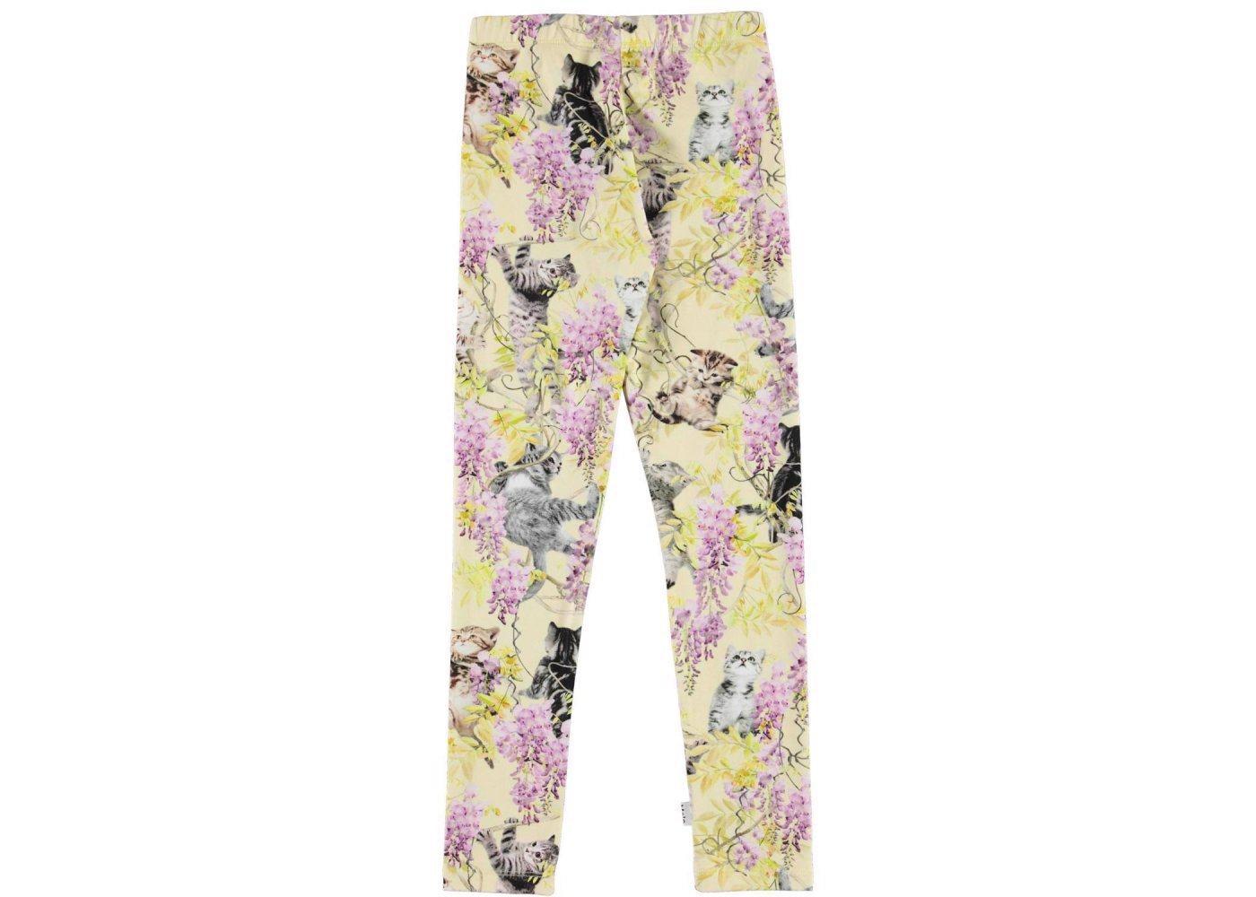 Flotte leggings med søde kattekillinger der kravler rundt imellem syrenbuske.