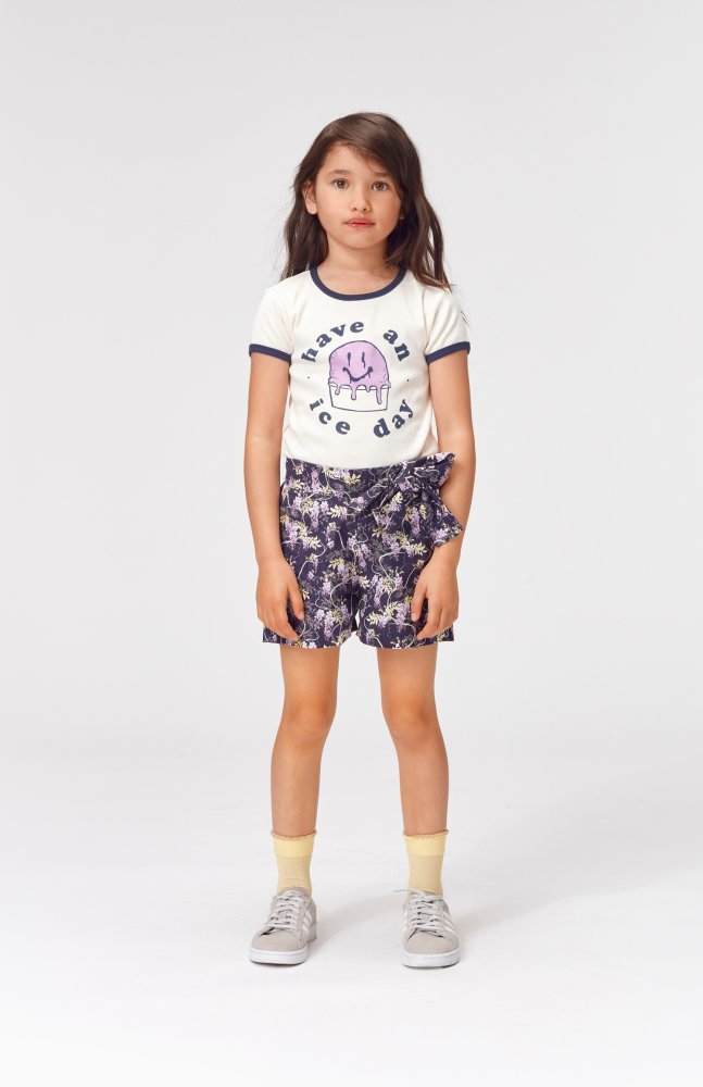 Højtaljede shorts med bred elastik linning og flot bindesløjfe. Shortsen har lommer i siden foran og en lomme bagpå.