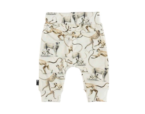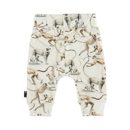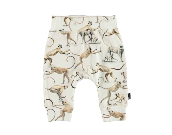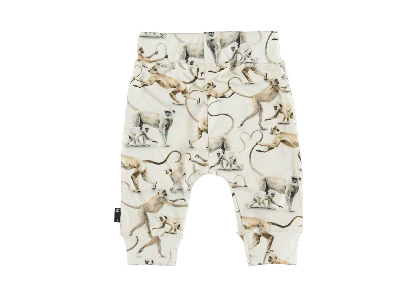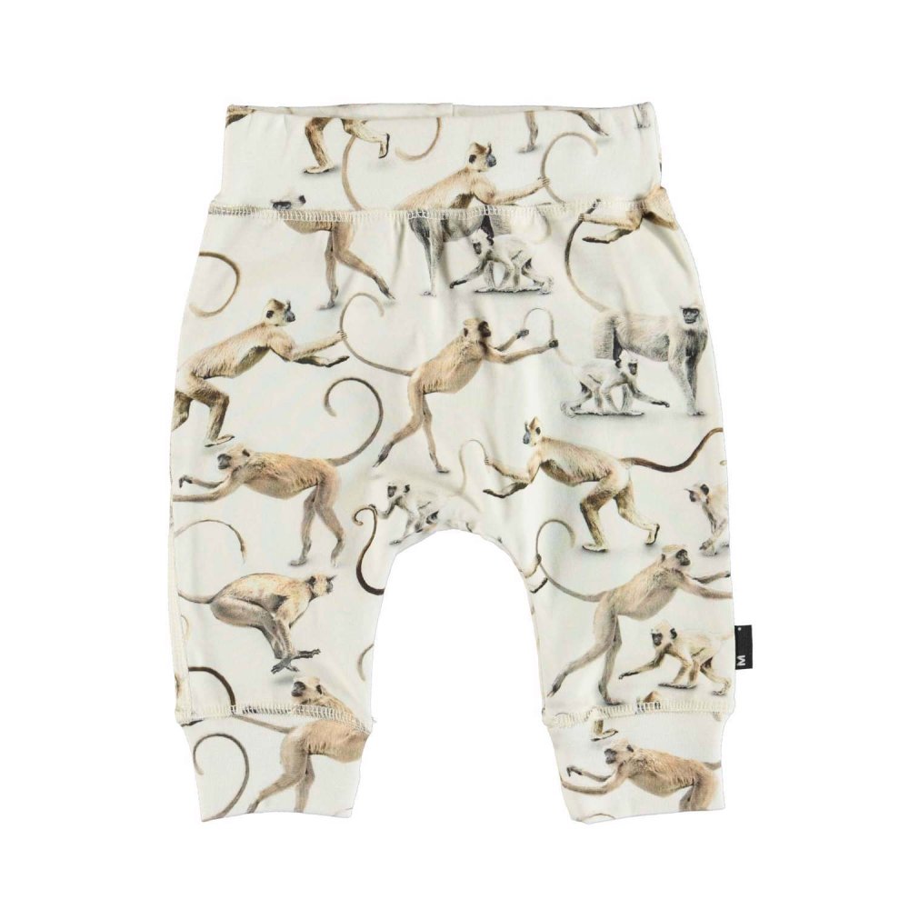 Skønne off white babybukser fyldt med sjove aber i fuld firspring fra Molo