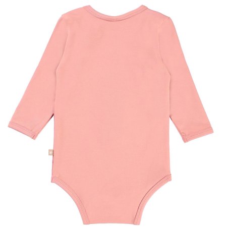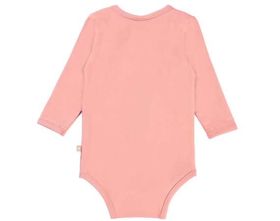 Bodyen har lange ærmer, og er ensfarvet bagpå. Den har ribkanter i alle åbninger og lukkes med trykknapper på skuldre og imellem ben.