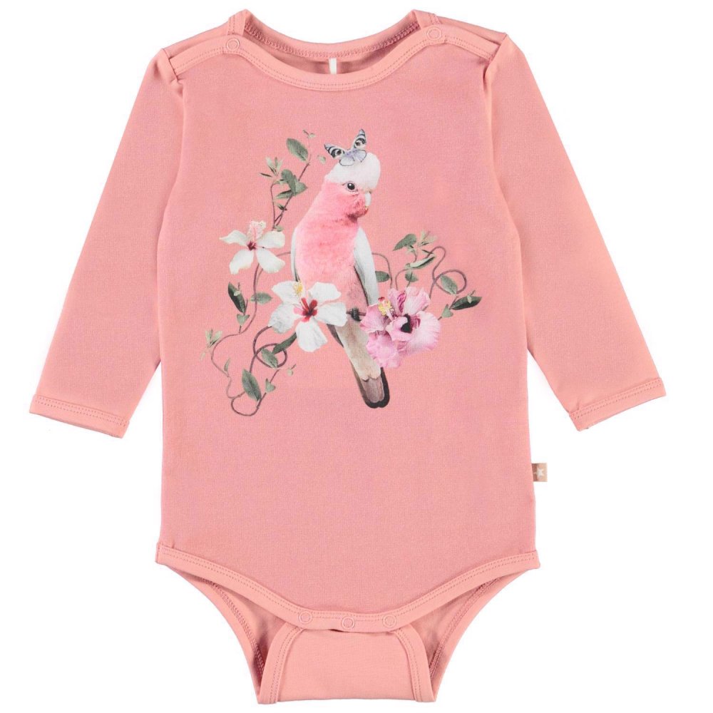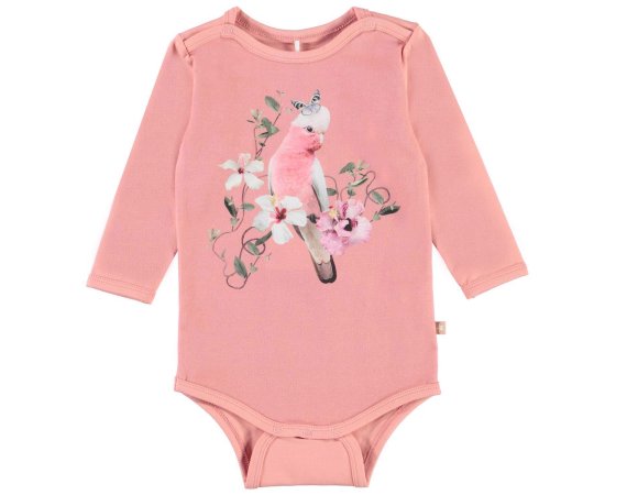 Skøn koralfarvet body med en flot papegøje foran fra Molo.