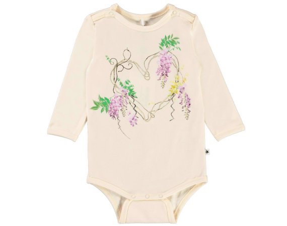 Skøn body med hjerte og blomsterranker foran fra Molo.