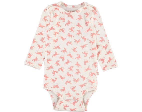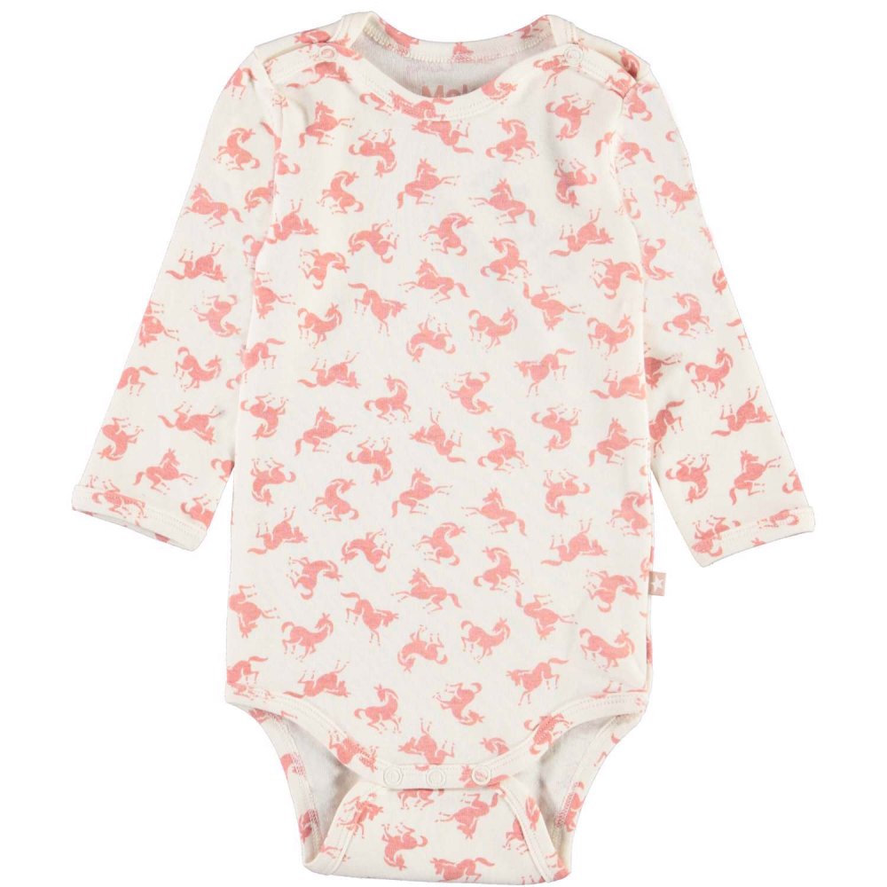 Skøn hvid body med rosa hesteprint fra Molo.