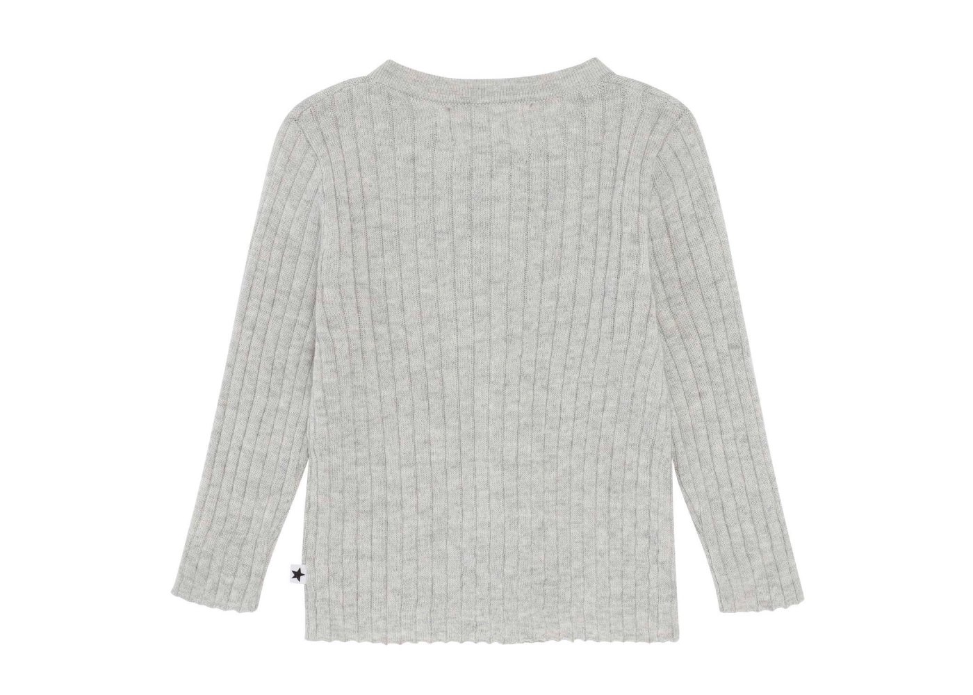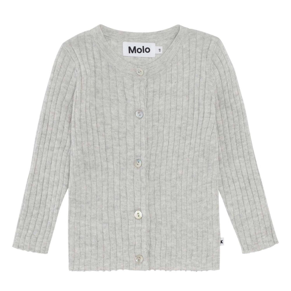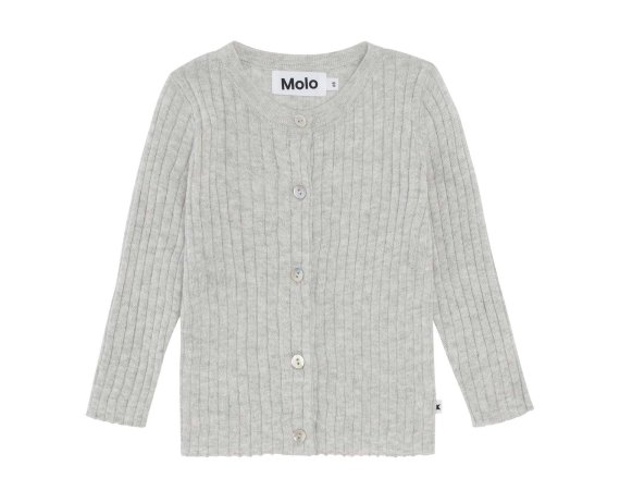 Lækker, flot ribstrikket cardigan med cashmere fra Molo.Cardiganen lukkes med flotte perlemorsknapper foran.Lav et skønt sæt med matchende sweatpants.