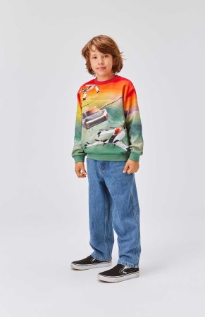 Seje jeans i blå denim med forvasket look fra Molo.