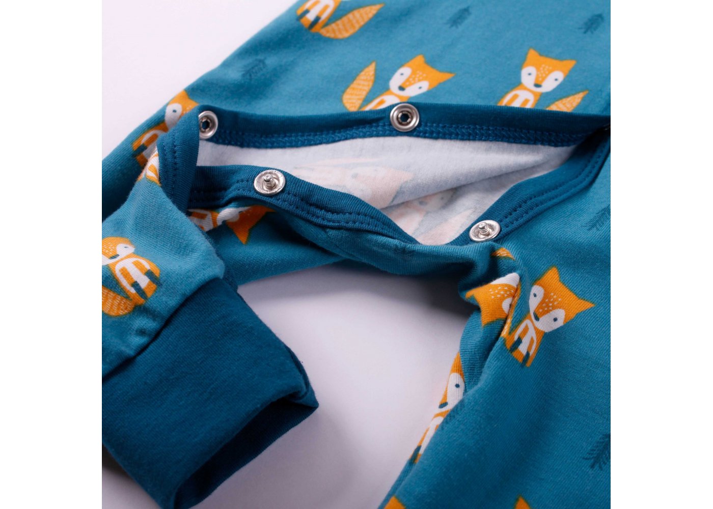 Heldragten lukkes med gennemgående trykknapper fra top til bund