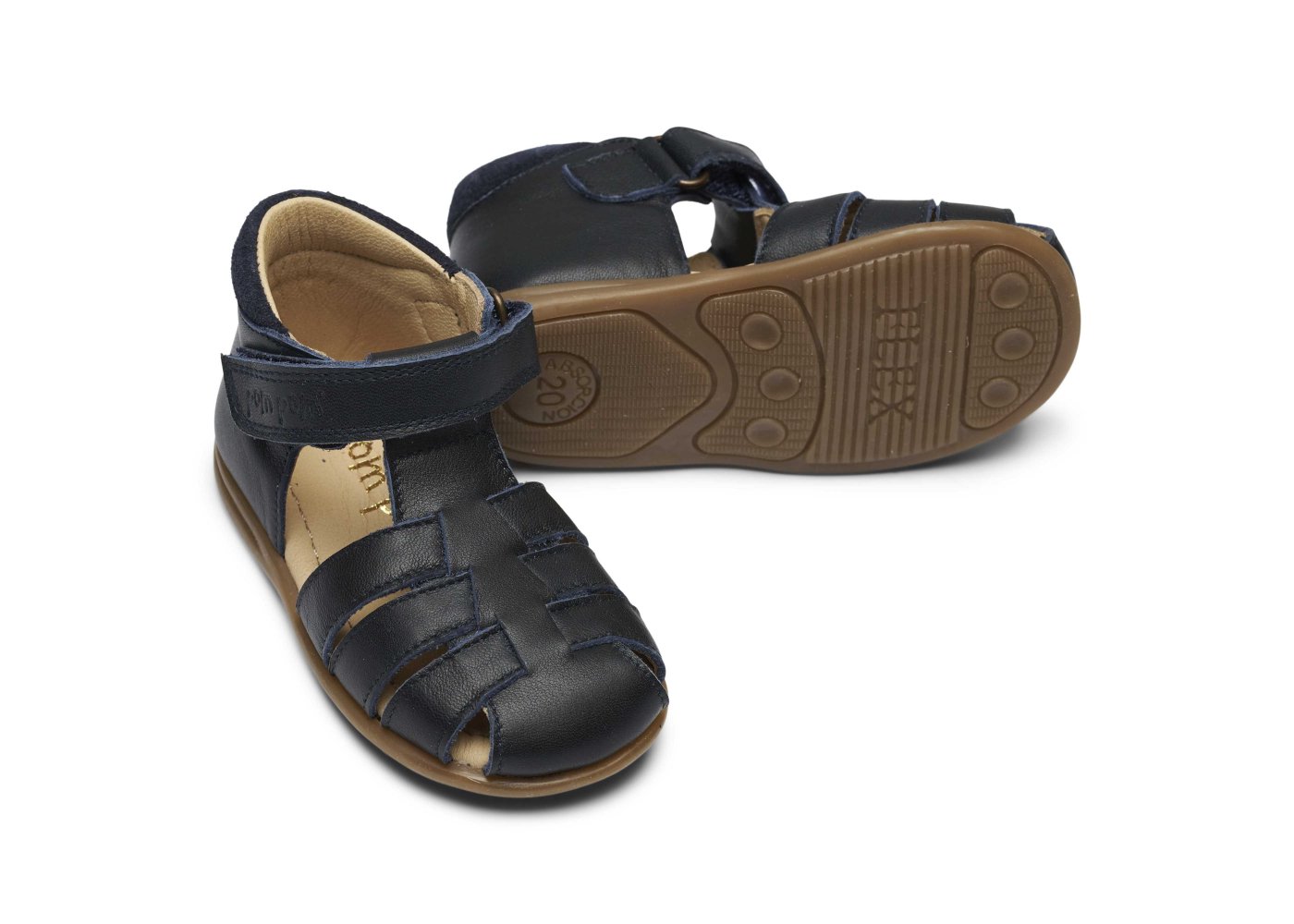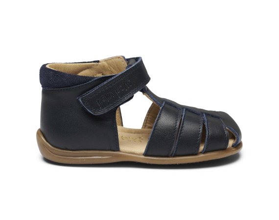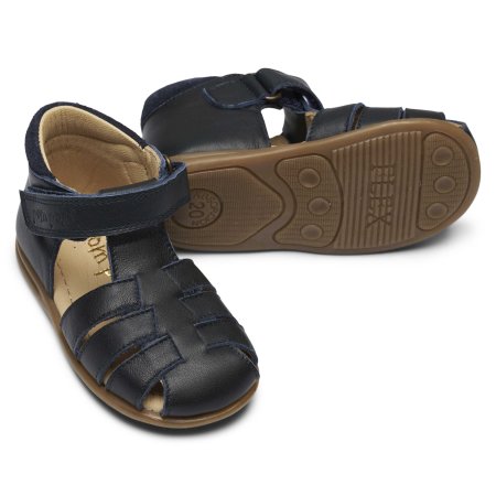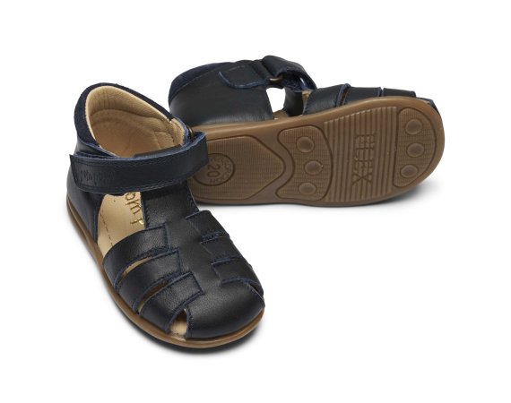 Skøn lukket blå begynder sandal fra Pom Pom.