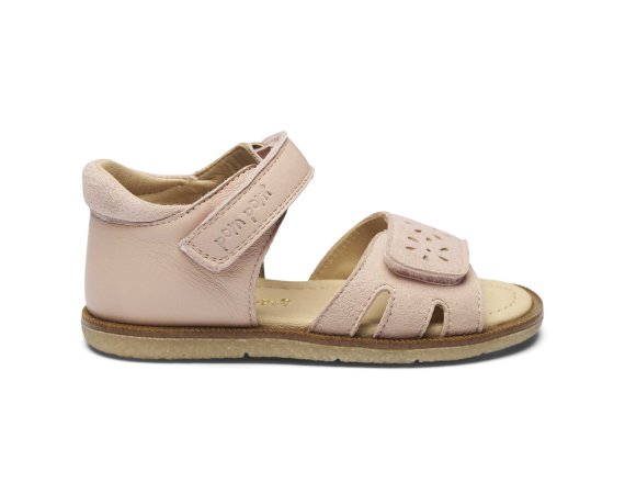 Sandalen lukkes med to velcroremme, der sikrer, at skoen kan tilpasses det enkelte barns fod.