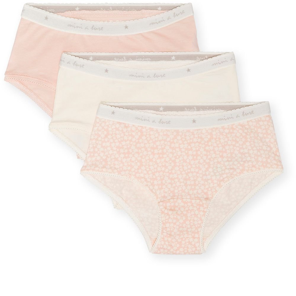 Sæt med 3 par lækre underbukser i en blød bomulds kvalitet fra MINI A TURE.Trussen har elastik i talje og en smal elastik i benåbninger.