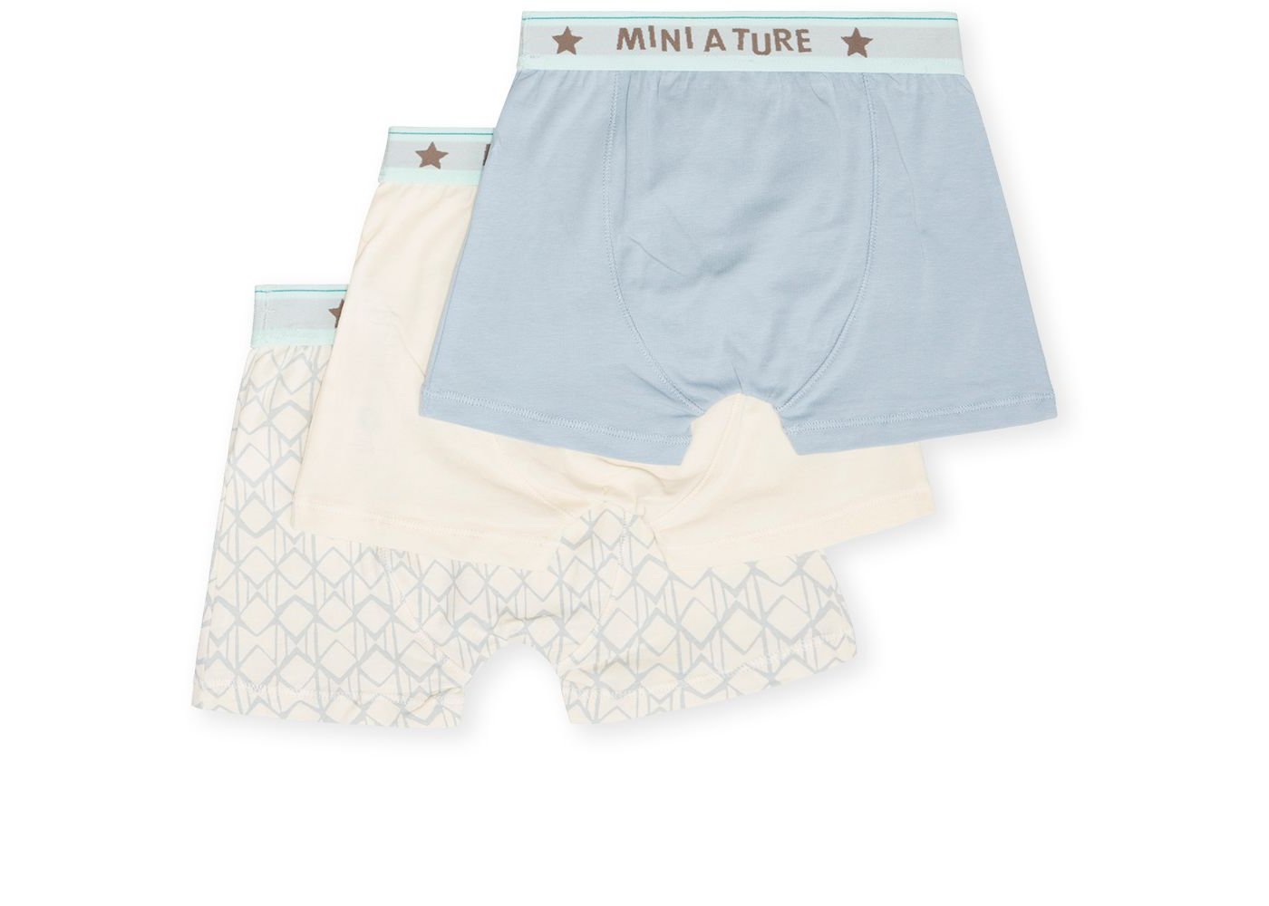 Tre forskellige Boxer-Shorts i farverne hvid, lyseblå og med print.Bukserne har en bred elastik i talje og passer fint sammen med Yoon boksershorts.