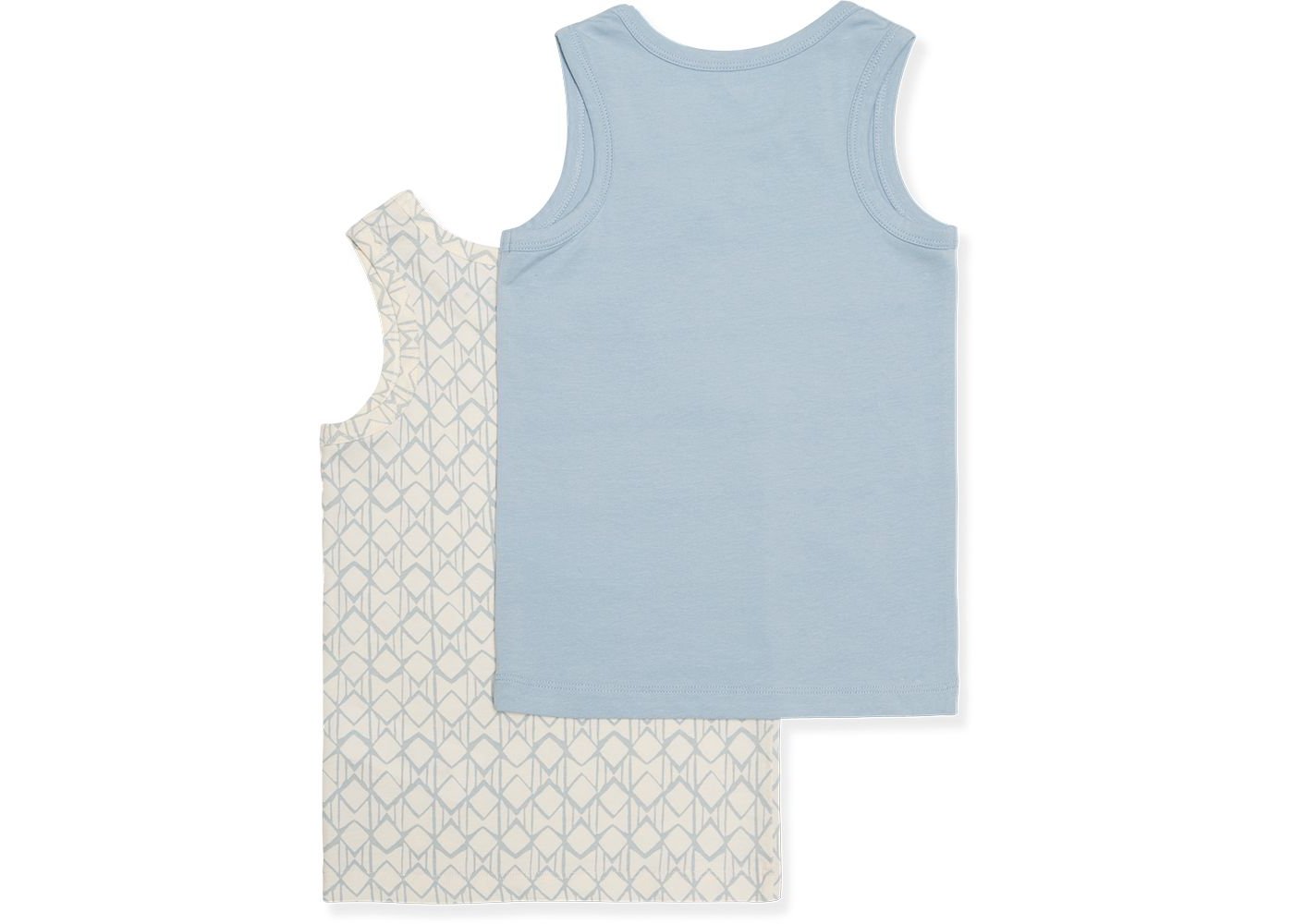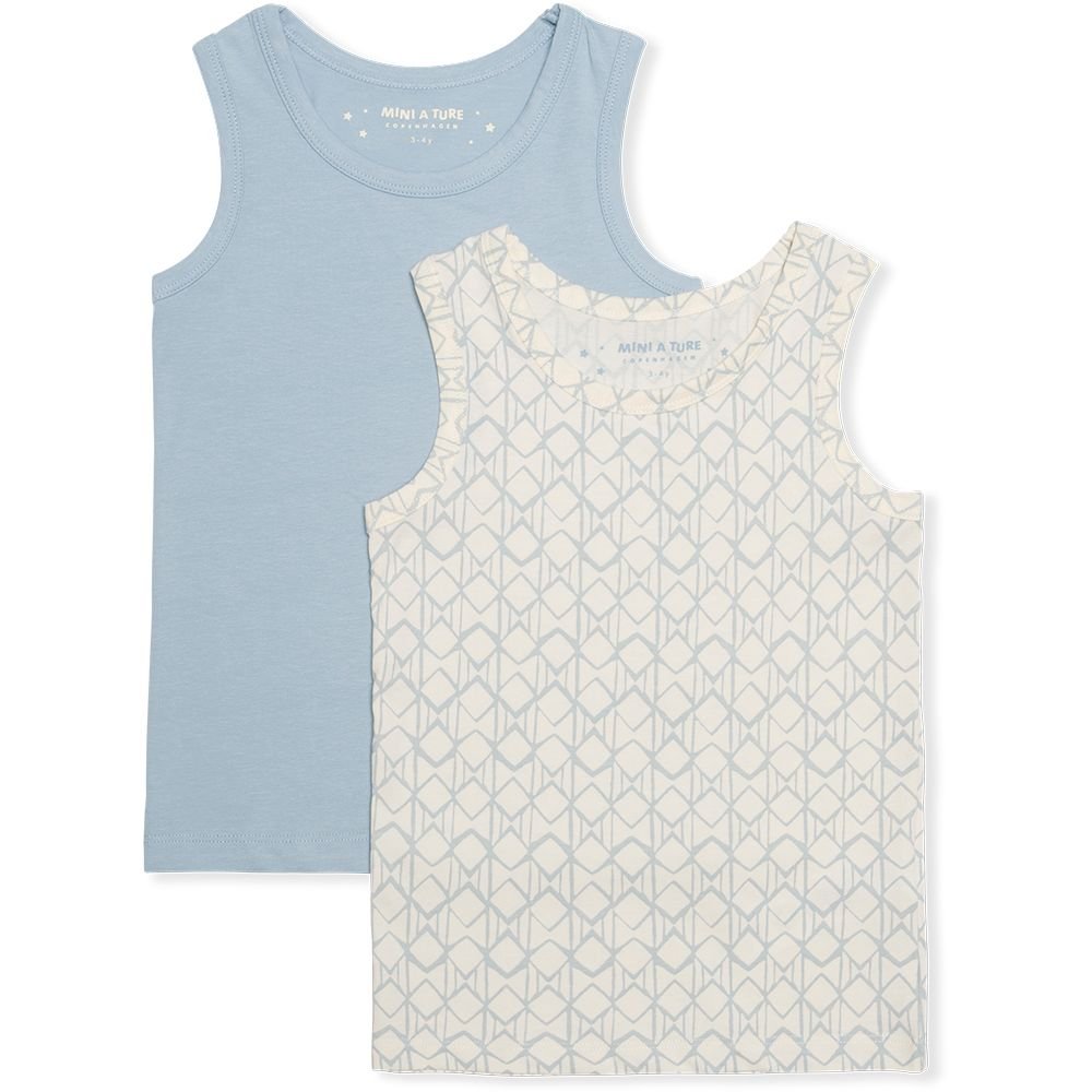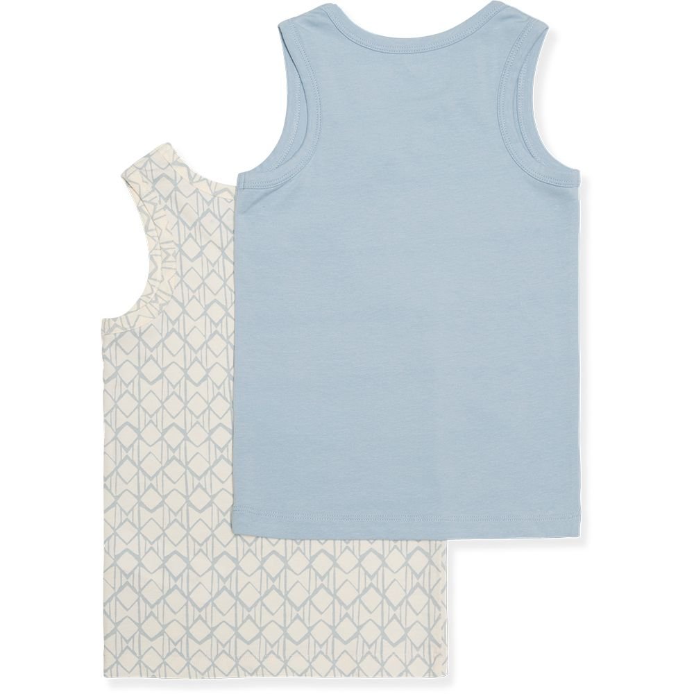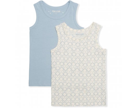 Sæt med to par drenge undertrøjer i forskellige nuancer.Undertrøjerne har smalle skulderstropper og ribkanter og passer fint sammen med Yash underbukser.