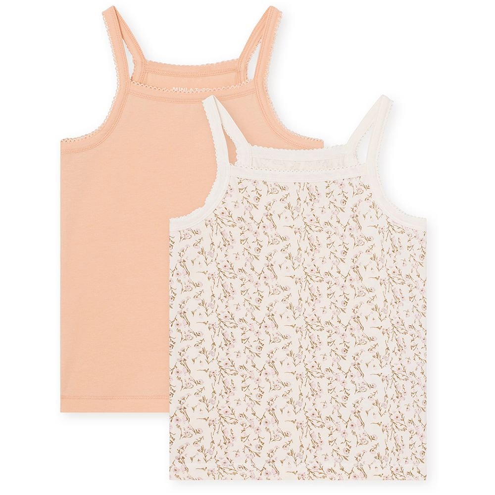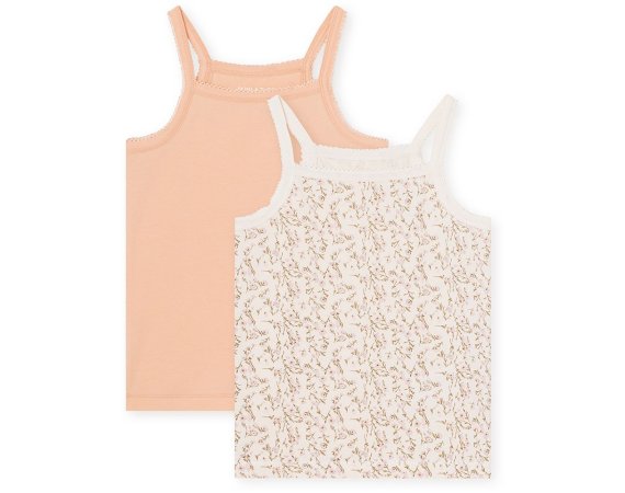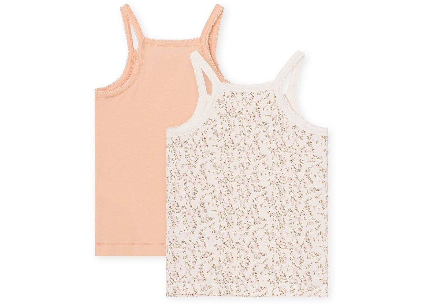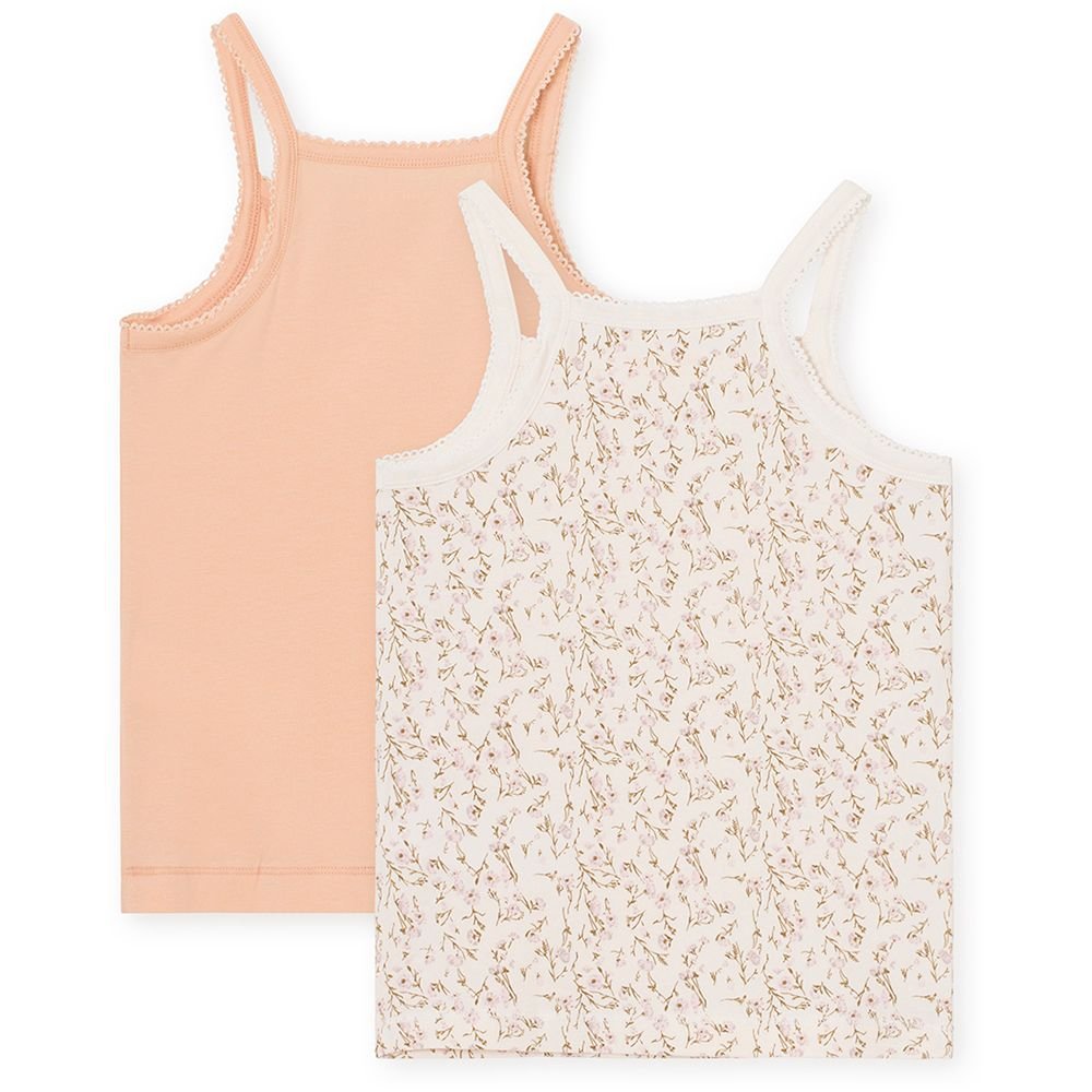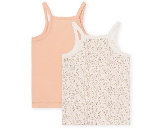 Her får du to undertrøjer fremstillet i en lækker og strækbar bomuldskvalitet. Den ene er ensfarvet og den anden har fine blomsterprint. Begge undertrøjer har en fin blondekant i halsudskæring og ved ærmegab.