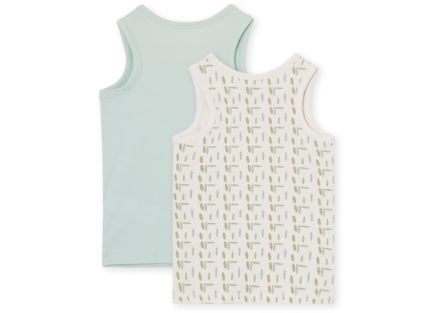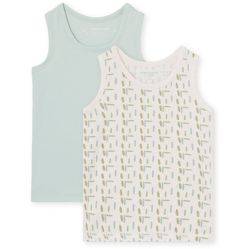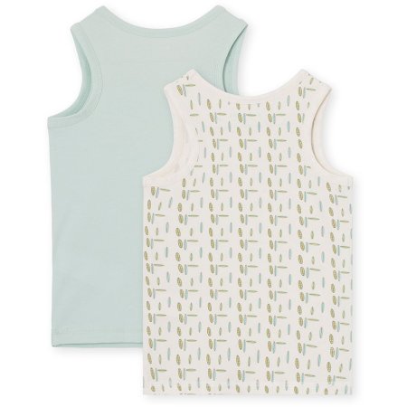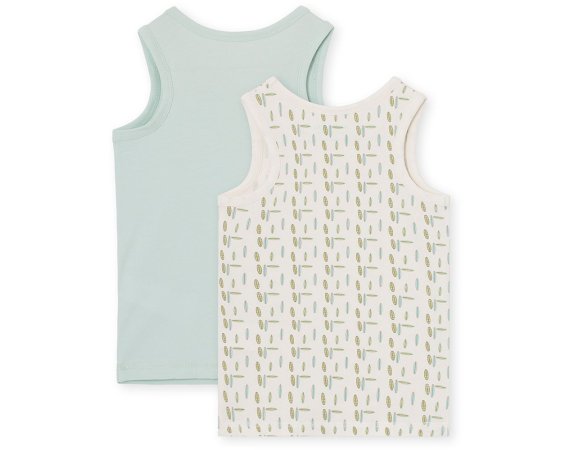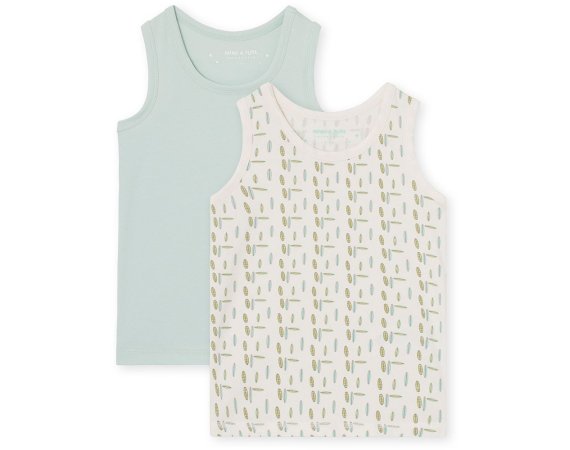 Her får du to undertrøjer fremstillet i en lækker og strækbar bomuldskvalitet. Den ene er ensfarvet, og den anden har fint print. Begge undertrøjer har ribkanter i halsudskæring og ved ærmegab.