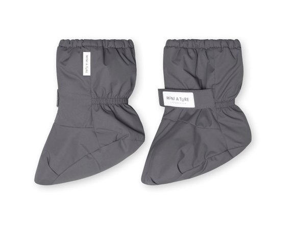 Bløde overtrækssko i slidstærkt materiale med tappede sømme, der gør dem lune og brugbare hele vinteren. Futterne har elastik samt en justerbar strop med velcro ved anklen til tilpasning.